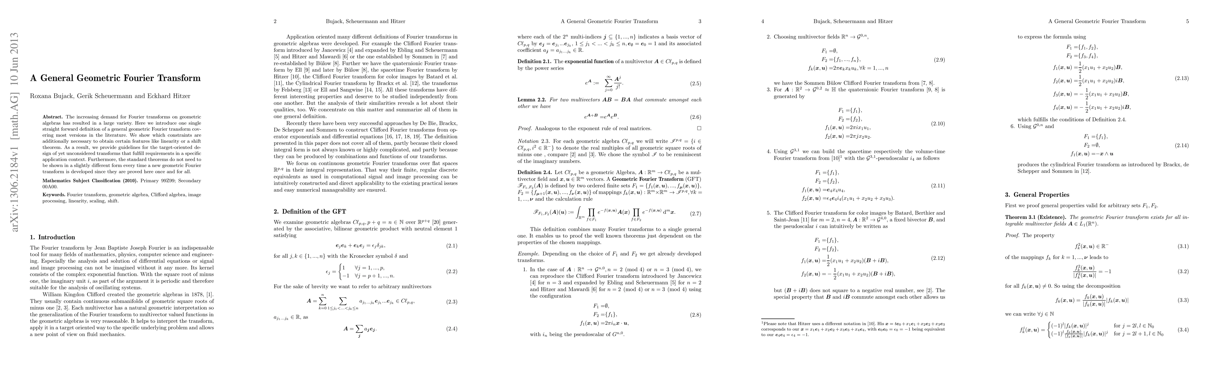The paper presents a generalized geometric Fourier transform definition, along with necessary constraints and proofs for standard theorems, providing a comprehensive foundation for future transform developments.