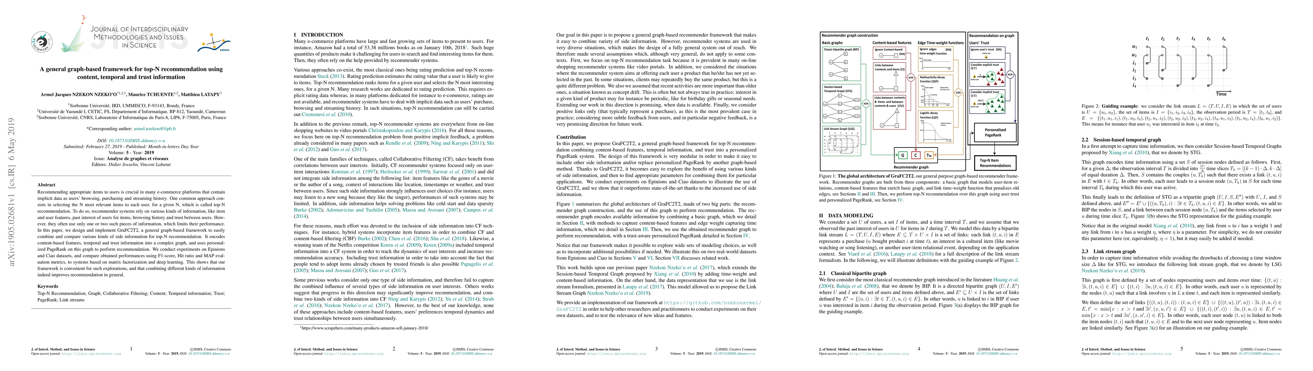 This paper introduces GraFC2T2, a graph-based framework for top-N recommendation that integrates content, temporal, and trust information. Experiments show that combining multiple information sources enhances recommendation performance compared to traditional methods.