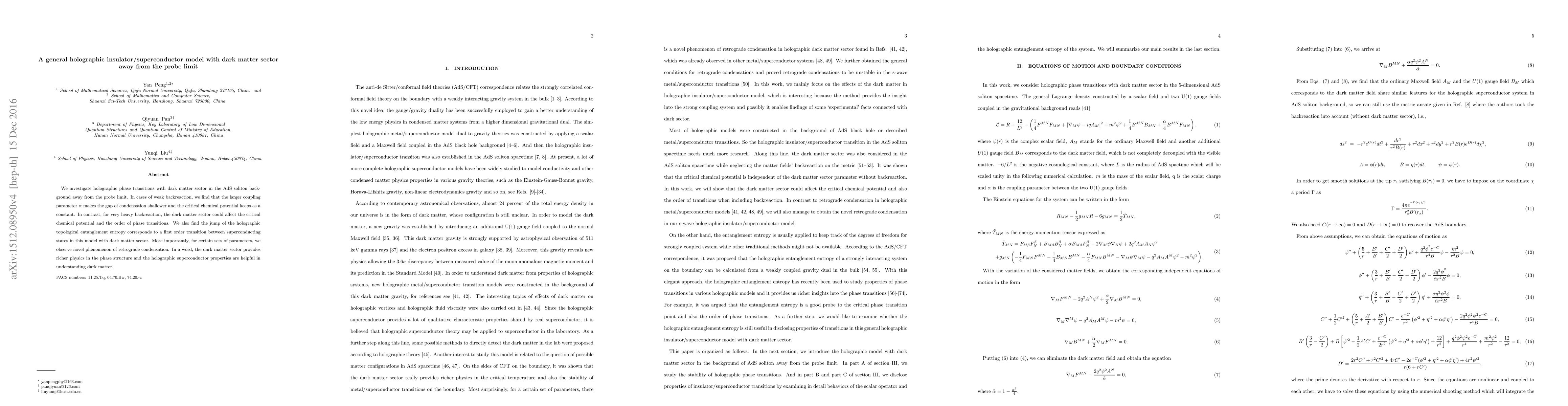 We investigate holographic phase transitions affected by dark matter sector in the AdS soliton background away from the probe limit. When neglecting backreaction, the scalar charge q can be scaled unity without loss of generality. While considering backreaction in this work, we obtain much more richer physics by choosing various scalar charge q. Firstly, we observe unstable retrograde condensation appears due to the dark matter sector and also derive stable conditions. For stable solutions, we find that the larger coupling parameter $\alpha$ makes the gap of condensation shallower and the critical chemical potential keeps as a constant with a large scalar charge q, which is similar to cases in the probe limit. In contrast, the dark matter sector could affect the critical chemical potential and the order of phase transitions for very small charge q. We also arrive at the same conclusion from the holographic topological entanglement entropy approach. Moreover, we state that the entanglement entropy approach is especially powerful in studying the effects of the dark matter sector in this general insulator/superconductor system.