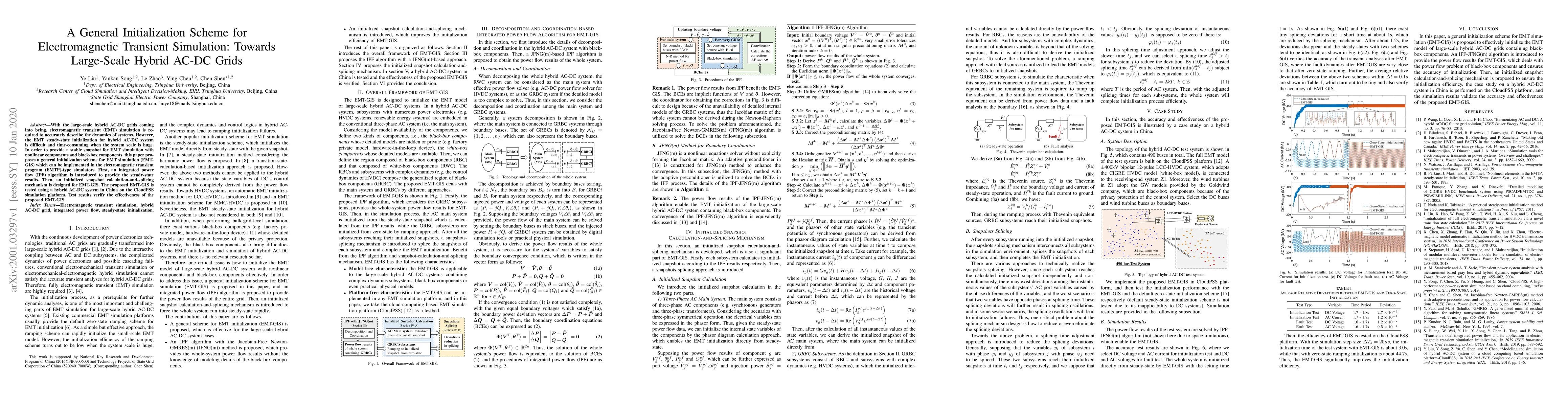 With the large-scale hybrid AC-DC grids coming into being, electromagnetic transient (EMT) simulation is required to accurately describe the dynamics of systems. However, the EMT steady-state initialization for hybrid AC-DC system is difficult and time-consuming when the system scale is huge. In order to provide a stable snapshot for EMT simulation with nonlinear components and black-box components, this paper proposes a general initialization scheme for EMT simulation (EMT-GIS) which can be implemented in the electromagnetic transient program (EMTP)-type simulators. First, an integrated power flow (IPF) algorithm is introduced to provide the steady-state results. Then, an initialized snapshot calculation-and-splicing mechanism is designed for EMT-GIS. The proposed EMT-GIS is tested using a hybrid AC-DC system in China on the CloudPSS simulation platform. Test results verify the effectiveness of the proposed EMT-GIS.