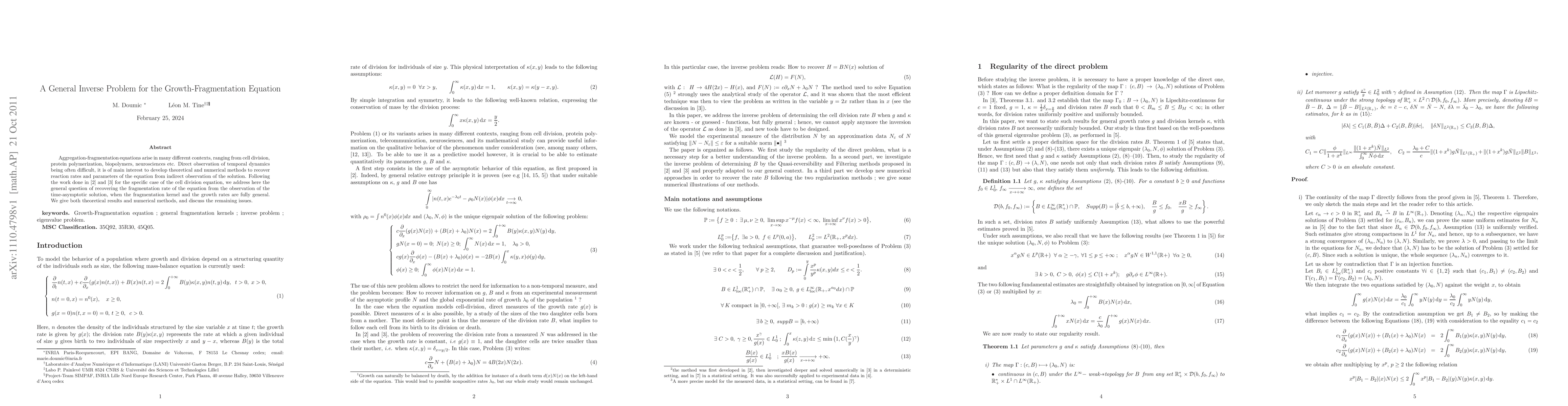 The growth-fragmentation equation arises in many different contexts, ranging from cell division, protein polymerization, biopolymers, neurosciences etc. Direct observation of temporal dynamics being often difficult, it is of main interest to develop theoretical and numerical methods to recover reaction rates and parameters of the equation from indirect observation of the solution. Following the work done in (Perthame, Zubelli, 2006) and (Doumic, Perthame, Zubelli, 2009) for the specific case of the cell division equation, we address here the general question of recovering the fragmentation rate of the equation from the observation of the time-asymptotic solution, when the fragmentation kernel and the growth rates are fully general. We give both theoretical results and numerical methods, and discuss the remaining issues.
