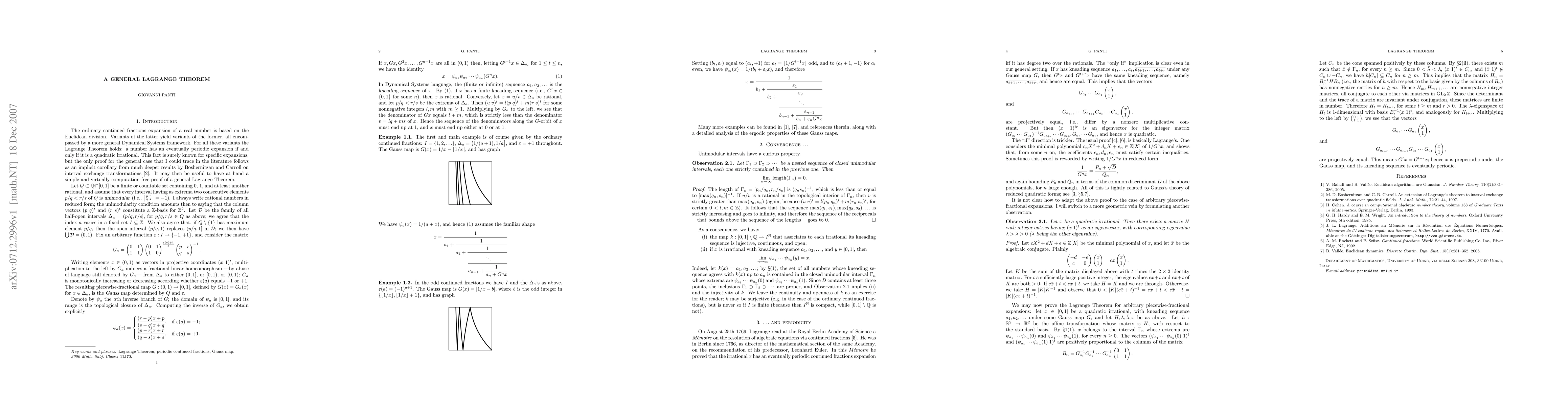 This paper presents a general Lagrange Theorem within a Dynamical Systems framework, proving that a number has an eventually periodic continued fraction expansion if and only if it is a quadratic irrational. It provides a straightforward proof for this general case, complementing deeper results by Boshernitzan and Carroll.