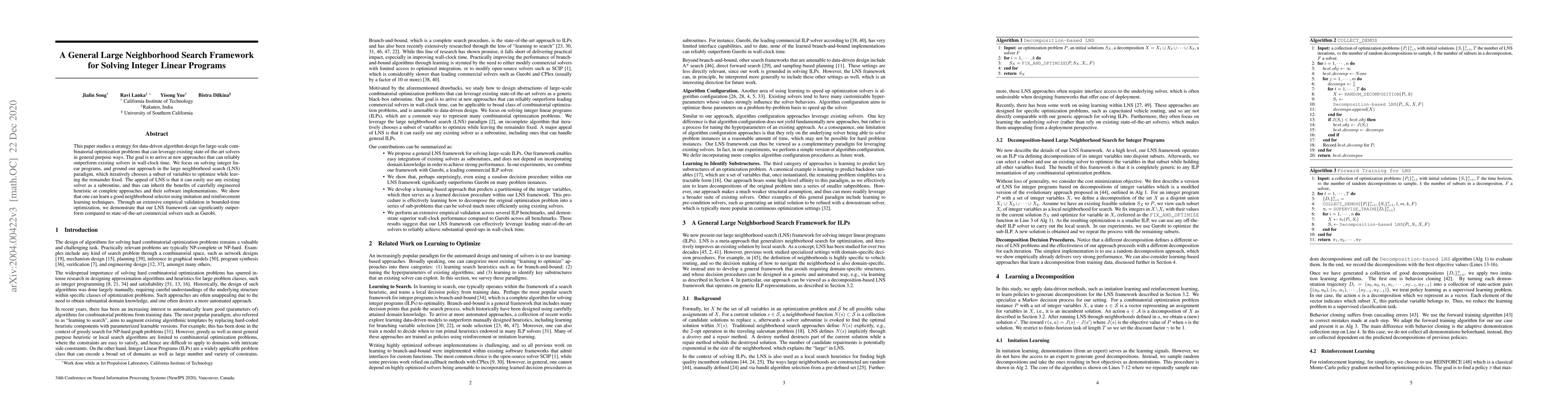 Researchers developed a framework that uses learning algorithms to improve performance in solving large-scale integer linear programs. Their approach significantly outperforms commercial solvers like Gurobi.