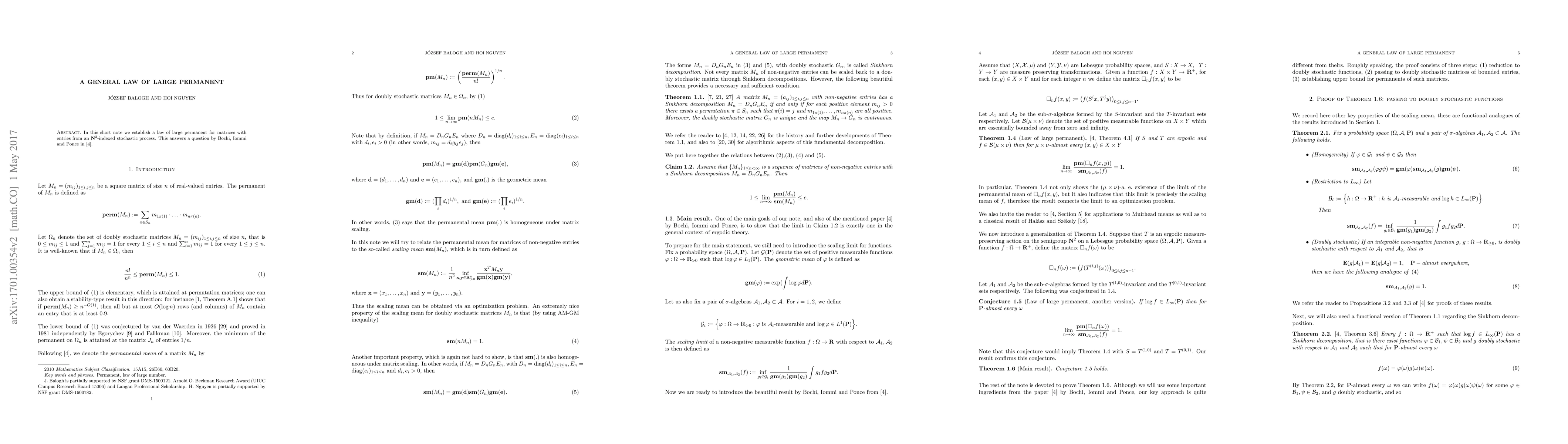 We show that permanents of doubly stochastic matrices with balanced entries are not far away from the minimum $n!/n^n$. As an application, we give a general law of large permanent, answering a question by Bochi, Iommi and Ponce