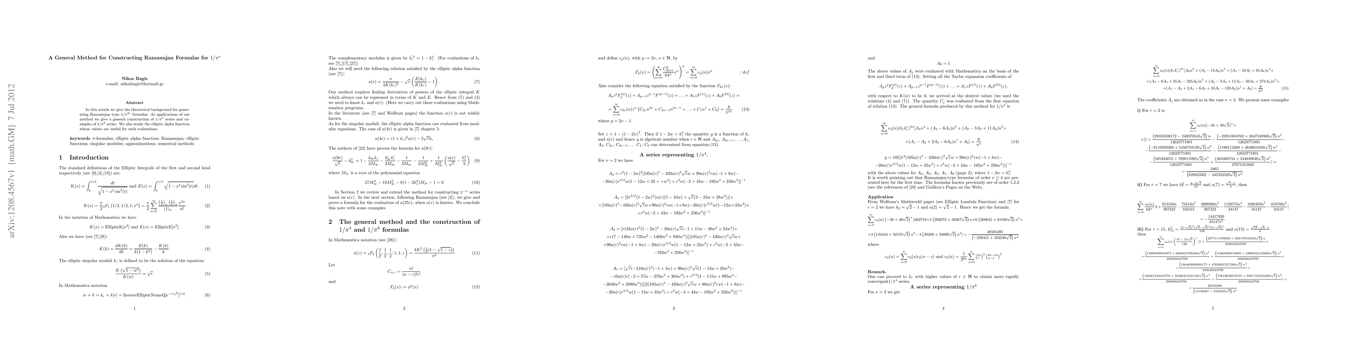 This paper presents a theoretical framework for generating Ramanujan-type formulas for $1/\pi^{2\nu}$, demonstrating its application through the construction of $1/\pi^4$ and $1/\pi^6$ series, and explores the elliptic alpha function for these evaluations.