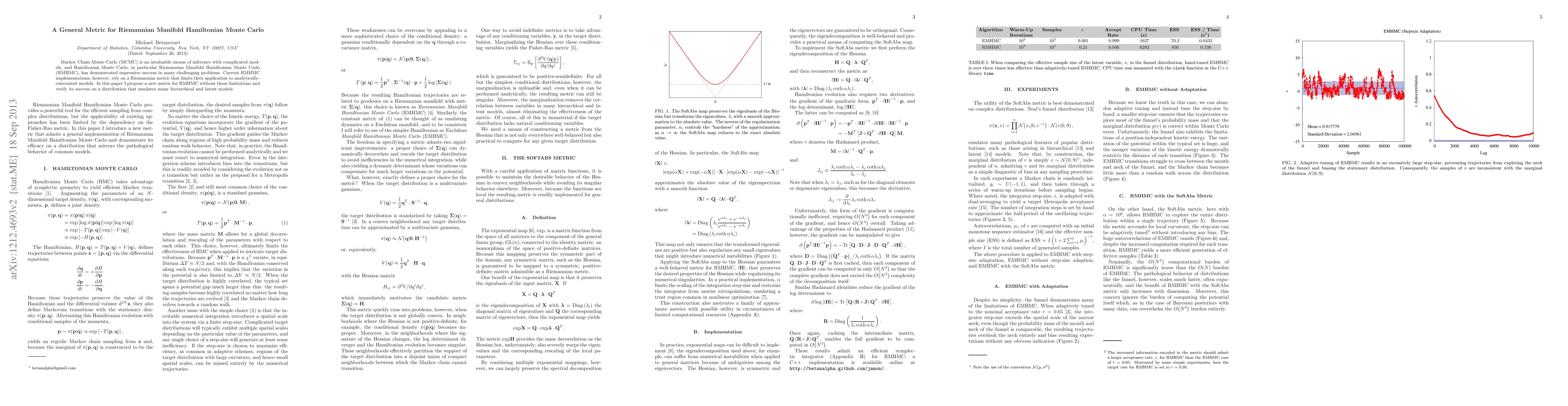 This paper introduces a new general metric for Riemannian Manifold Hamiltonian Monte Carlo (RMHMC) that removes the limitations of current implementations, which rely on analytically-convenient metrics. The proposed metric is validated through its application to a distribution representative of complex hierarchical and latent models.