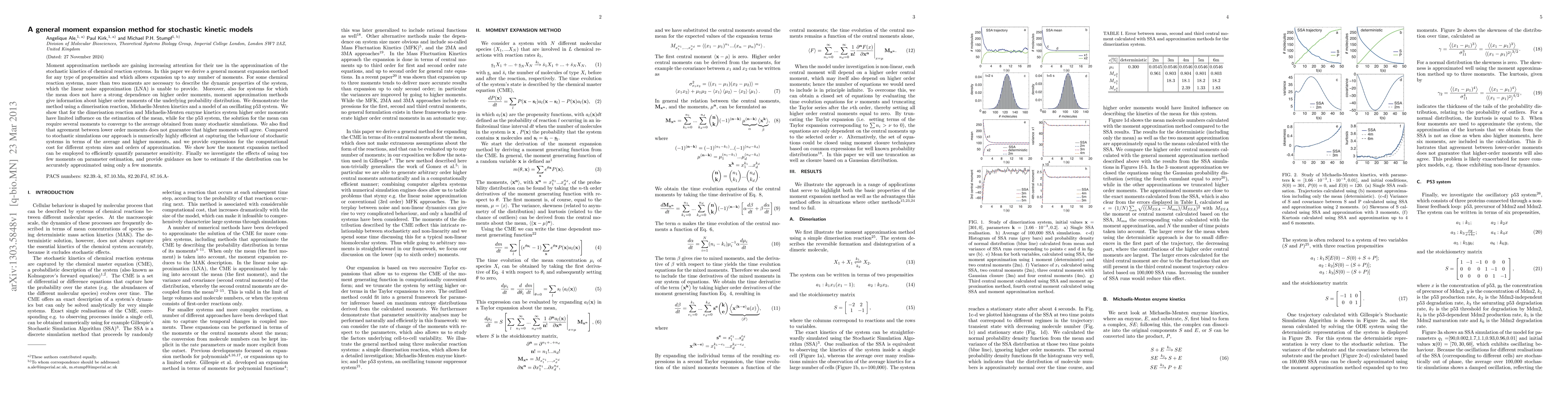 Moment approximation methods are gaining increasing attention for their use in the approximation of the stochastic kinetics of chemical reaction systems. In this paper we derive a general moment expansion method for any type of propensities and which allows expansion up to any number of moments. For some chemical reaction systems, more than two moments are necessary to describe the dynamic properties of the system, which the linear noise approximation (LNA) is unable to provide. Moreover, also for systems for which the mean does not have a strong dependence on higher order moments, moment approximation methods give information about higher order moments of the underlying probability distribution. We demonstrate the method using a dimerisation reaction, Michaelis-Menten kinetics and a model of an oscillating p53 system. We show that for the dimerisation reaction and Michaelis-Menten enzyme kinetics system higher order moments have limited influence on the estimation of the mean, while for the p53 system, the solution for the mean can require several moments to converge to the average obtained from many stochastic simulations. We also find that agreement between lower order moments does not guarantee that higher moments will agree. Compared to stochastic simulations our approach is numerically highly efficient at capturing the behaviour of stochastic systems in terms of the average and higher moments, and we provide expressions for the computational cost for different system sizes and orders of approximation. {We show how the moment expansion method can be employed to efficiently {quantify parameter sensitivity}.} Finally we investigate the effects of using too few moments on parameter estimation, and provide guidance on how to estimate if the distribution can be accurately approximated using only a few moments.