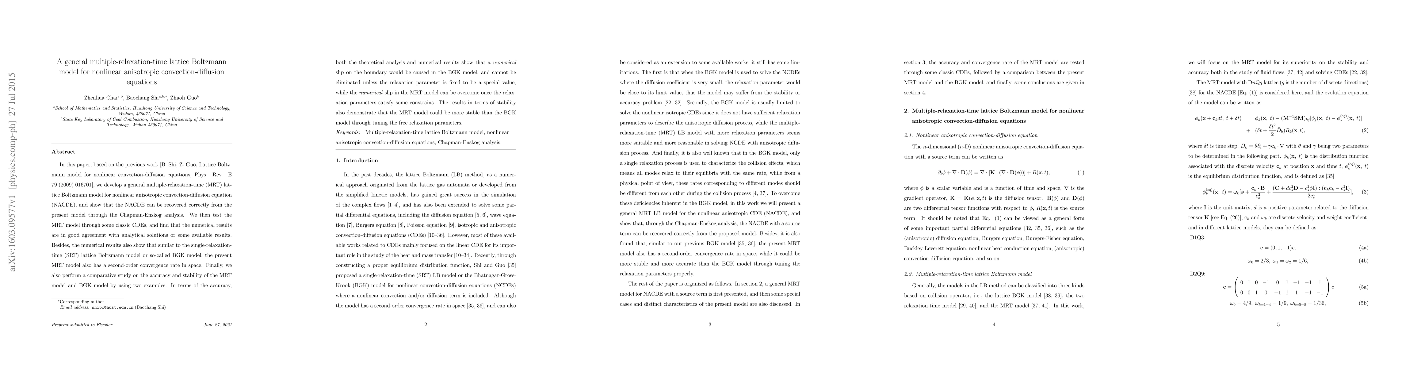 This paper develops a general multiple-relaxation-time (MRT) lattice Boltzmann model for nonlinear anisotropic convection-diffusion equations (NACDE) and demonstrates its accuracy and stability through comparative analysis with the single-relaxation-time (SRT) BGK model. The MRT model shows improved accuracy and stability, eliminating numerical slip under certain conditions.