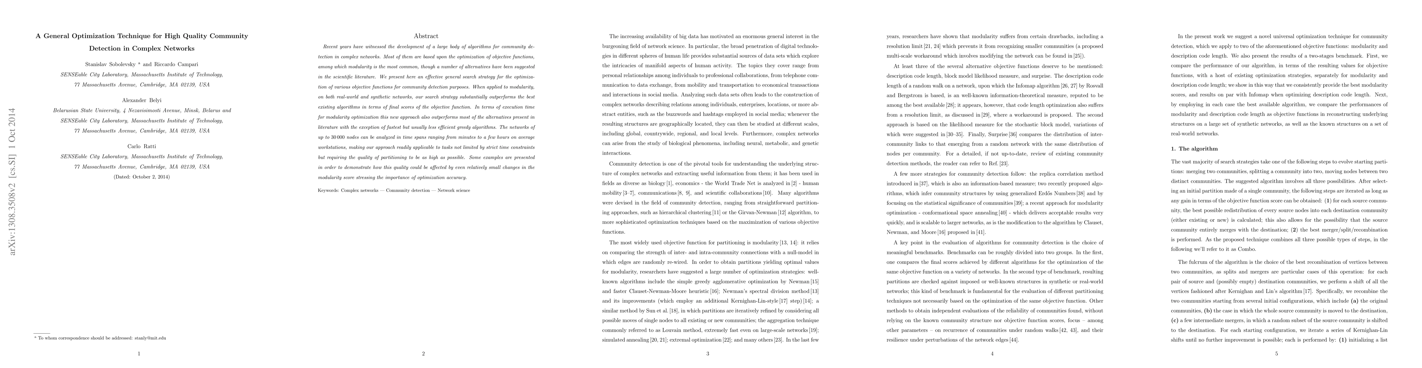 This paper introduces a versatile optimization technique for community detection in complex networks, significantly improving modularity-based algorithms while maintaining comparable performance for description length. The proposed method efficiently handles large networks and offers a balanced trade-off between optimization quality and execution time.