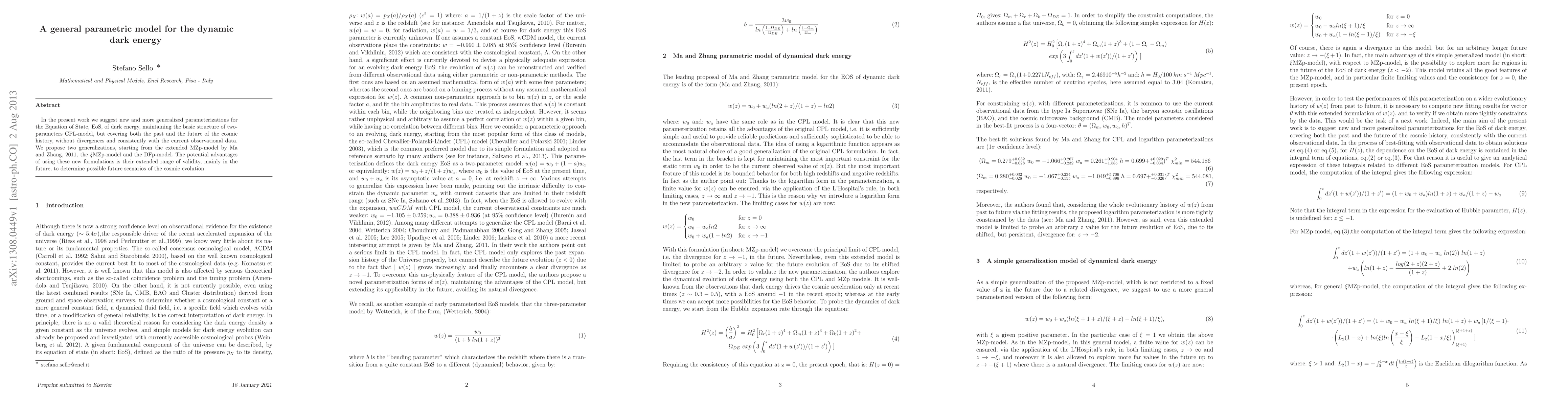 In the present work we suggest new and more generalized parameterizations for the Equation of State, EoS, of dark energy, maintaining the basic structure of two-parameters CPL-model, but covering both the past and the future of the cosmic history, without divergences and consistently with the current observational data. We propose two generalizations, starting from the extended MZp-model by Ma and Zhang, 2011, the $\xi$MZp-model and the DFp-model. The potential advantages of using these new formulations is their extended range of validity, mainly in the future, to determine possible future scenarios of the cosmic evolution.