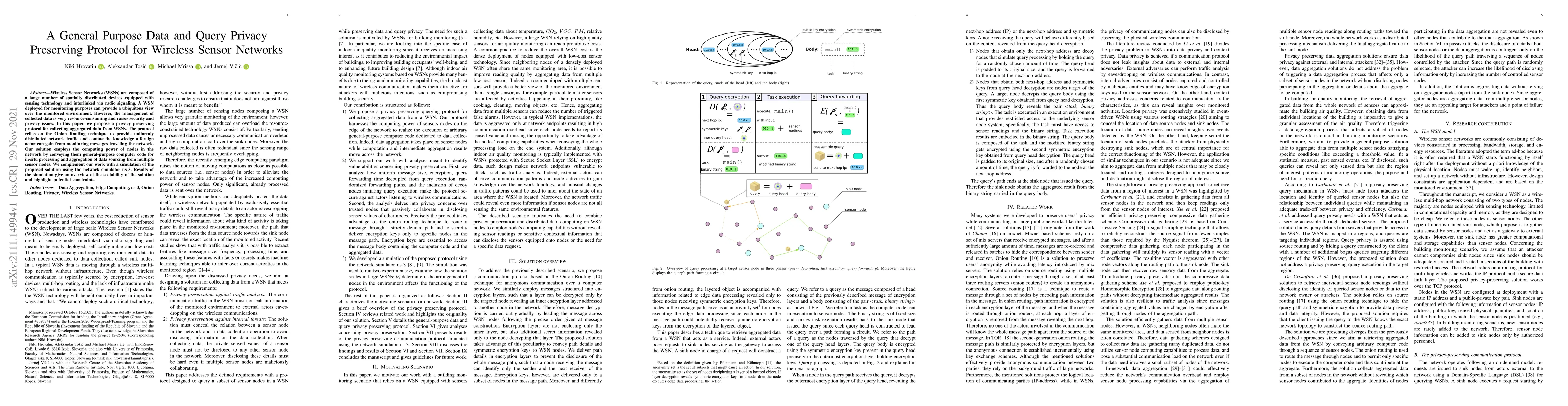 This paper proposes a privacy-preserving protocol for wireless sensor networks (WSNs) that uses Onion Routing to secure data and employs in-situ processing for aggregated data collection. The protocol aims to mitigate security and privacy risks while leveraging node computing power, and its effectiveness is demonstrated through simulations using ns-3.