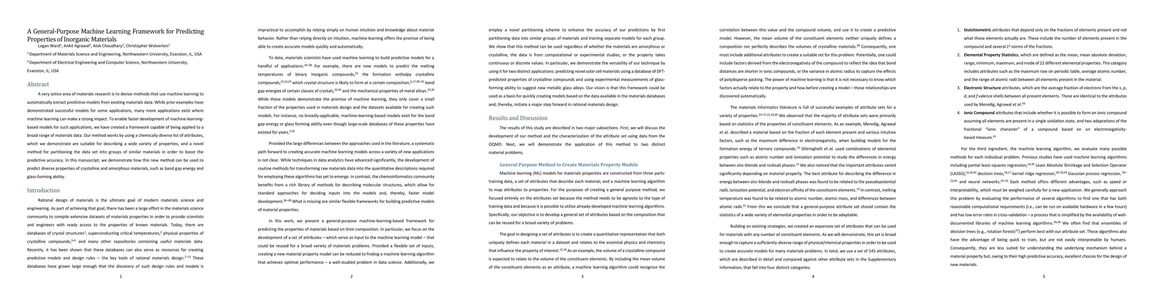This paper introduces a versatile machine learning framework designed to predict properties of inorganic materials by leveraging chemically diverse attributes and a novel data partitioning method. The framework demonstrates successful predictions of various properties, including band gap energy and glass-forming ability, across crystalline and amorphous materials.