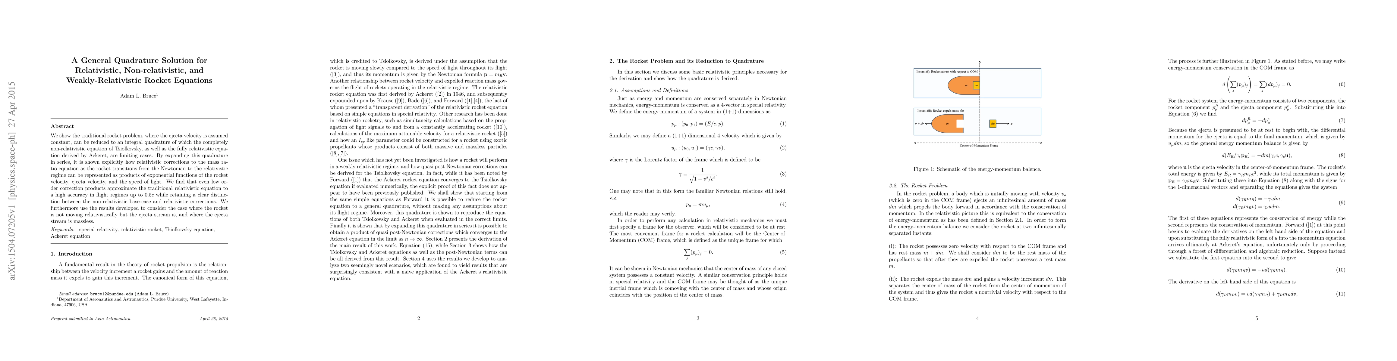 We show the traditional rocket problem, where the ejecta velocity is assumed constant, can be reduced to an integral quadrature of which the completely non-relativistic equation of Tsiolkovsky, as well as the fully relativistic equation derived by Ackeret, are limiting cases. By expanding this quadrature in series, it is shown explicitly how relativistic corrections to the mass ratio equation as the rocket transitions from the Newtonian to the relativistic regime can be represented as products of exponential functions of the rocket velocity, ejecta velocity, and the speed of light. We find that even low order correction products approximate the traditional relativistic equation to a high accuracy in flight regimes up to $0.5c$ while retaining a clear distinction between the non-relativistic base-case and relativistic corrections. We furthermore use the results developed to consider the case where the rocket is not moving relativistically but the ejecta stream is, and where the ejecta stream is massless.