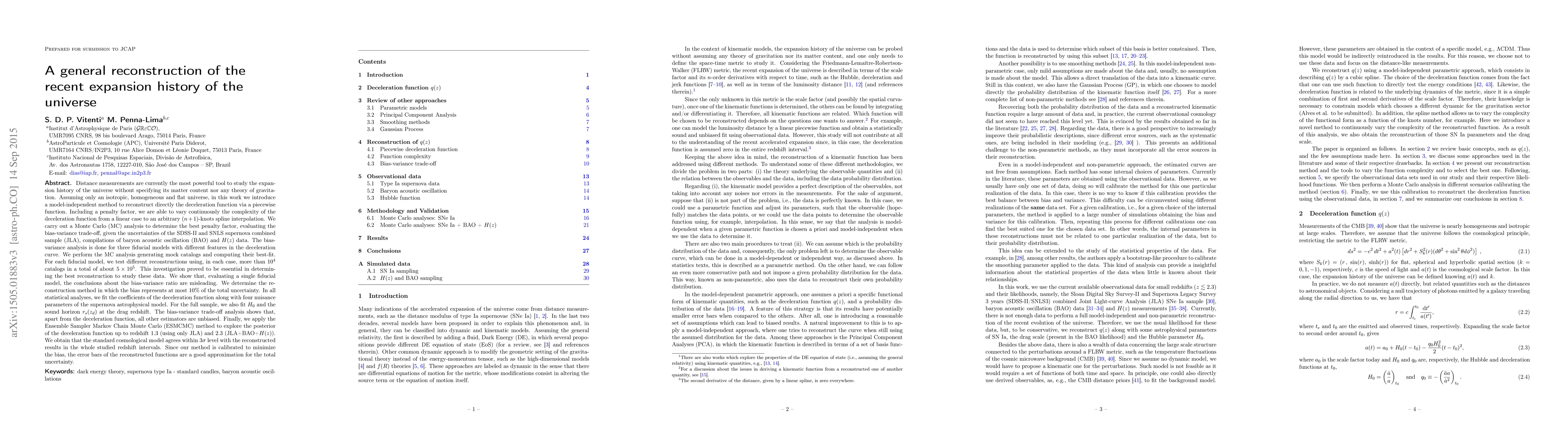 This paper presents a model-independent method to reconstruct the universe's expansion history using distance measurements, focusing on the deceleration function. The authors employ a Monte Carlo analysis to determine the optimal penalty factor, achieving a bias of at most 10% of the total uncertainty, and validate their method against the standard cosmological model.
