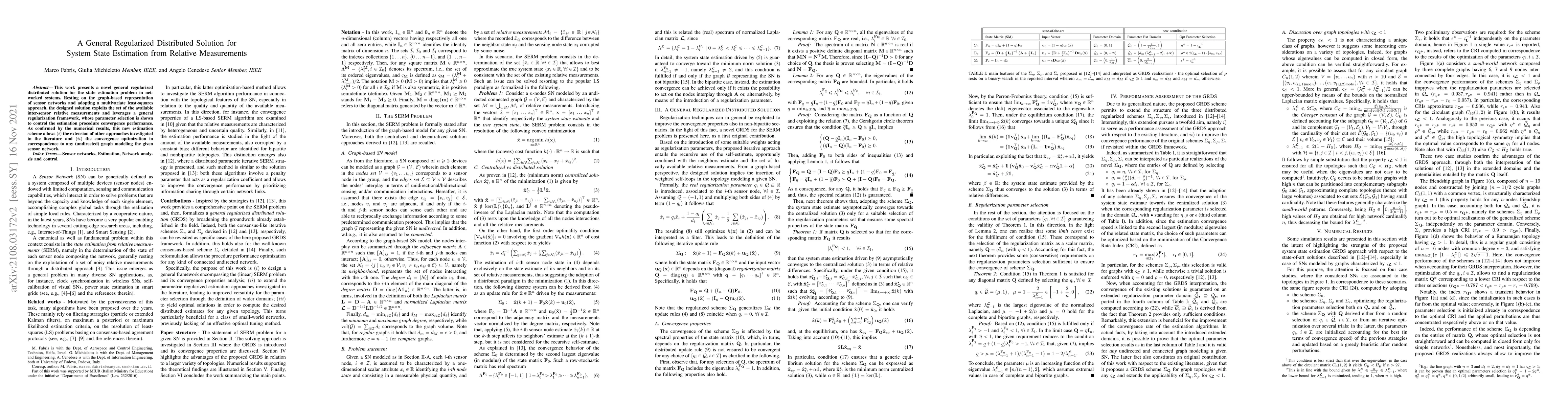 This work presents a novel general regularized distributed solution for the state estimation problem in networked systems. Resting on the graph-based representation of sensor networks and adopting a multivariate least-squares approach, the designed solution exploits the set of the available inter-sensor relative measurements and leverages a general regularization framework, whose parameter selection is shown to control the estimation procedure convergence performance. As confirmed by the numerical results, this new estimation scheme allows (i) the extension of other approaches investigated in the literature and (ii) the convergence optimization in correspondence to any (undirected) graph modeling the given sensor network.