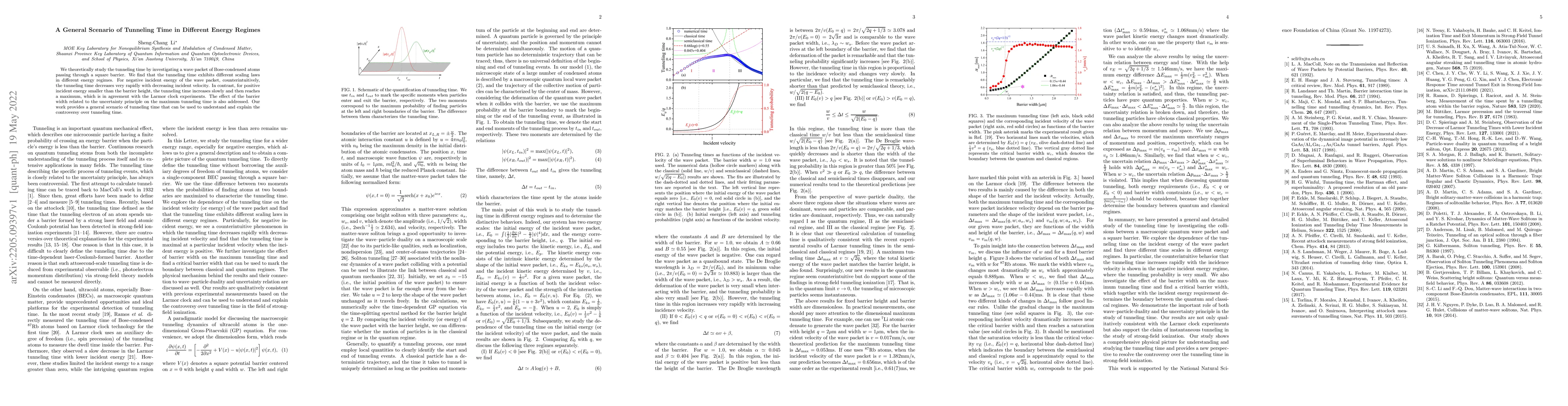 We theoretically study the tunneling time by investigating a wave packet of Bose-condensed atoms passing through a square barrier. We find that the tunneling time exhibits different scaling laws in different energy regimes. For negative incident energy of the wave packet, counterintuitively, the tunneling time decreases very rapidly with decreasing incident velocity. In contrast, for positive incident energy smaller than the barrier height, the tunneling time increases slowly and then reaches a maximum, which is in agreement with the Larmor clock experiments. The effect of the barrier width related to the uncertainty principle on the maximum tunneling time is also addressed. Our work provides a general scenario of tunneling time that can be used to understand and explain the controversy over tunneling time.