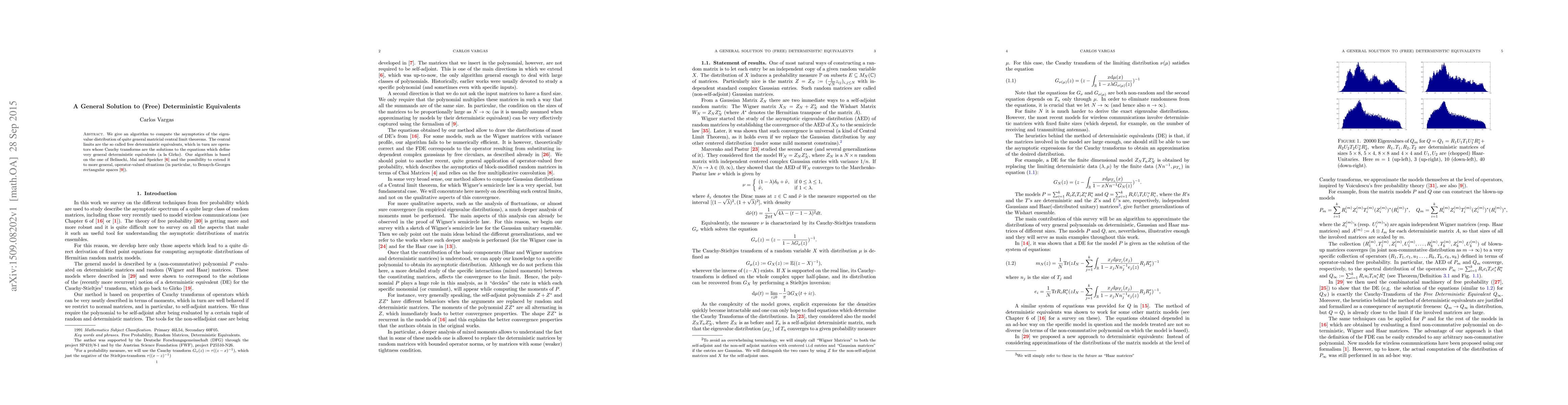 Summary: This paper presents an algorithm for computing the eigenvalue distribution of general matricial central limit theorems, focusing on free deterministic equivalents, and extends existing methods to more complex operator-valued scenarios. The algorithm is based on prior work by Belinschi, Mai, and Speicher.
