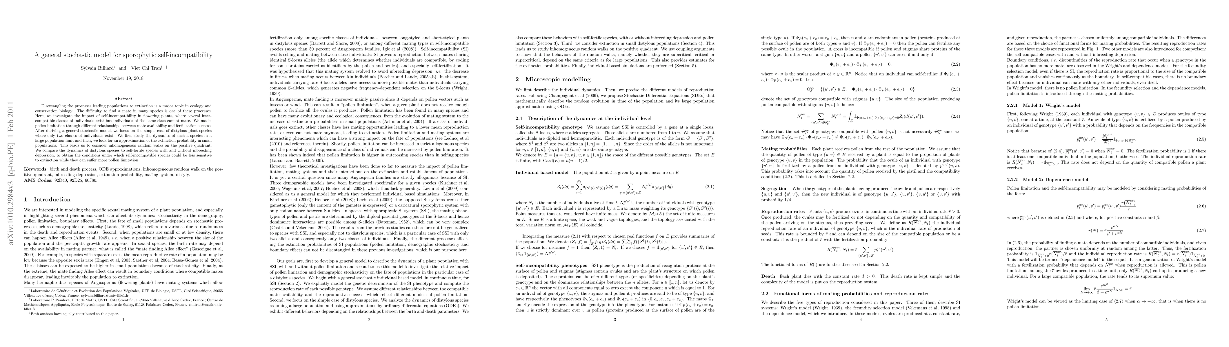 This study develops a stochastic model to understand the impact of self-incompatibility on flowering plant populations, exploring how it affects extinction risk and pollen limitation in small versus large populations.