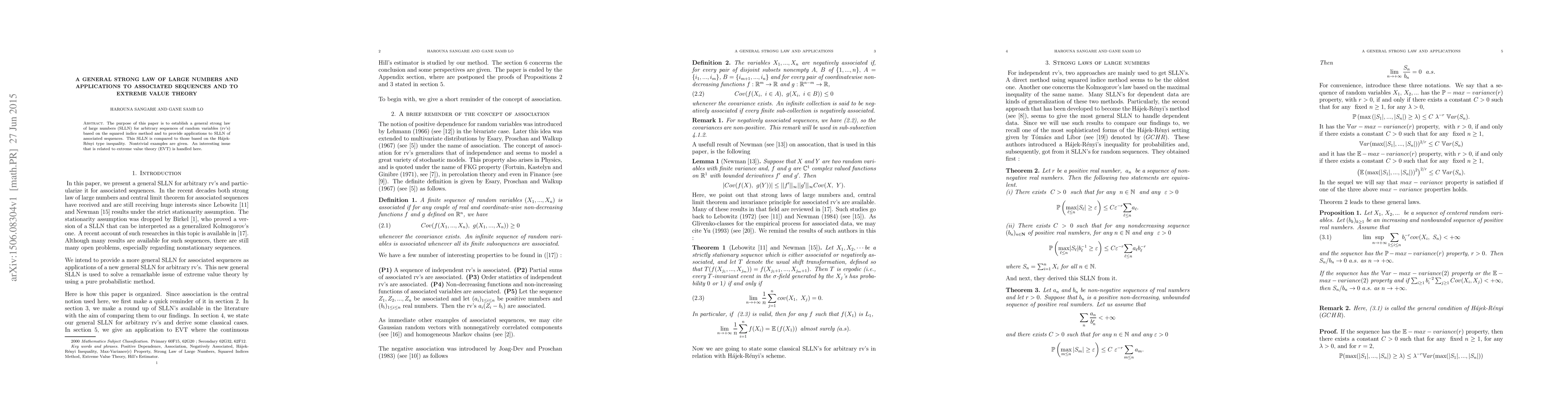 The purpose of this paper is to establish a general strong law of large numbers (SLLN) for arbitrary sequences of random variables (rv's) based on the squared indice method and to provide applications to SLLN of associated sequences. This SLLN is compared to those based on the H\'ajek-R\'enyi type inequality. Nontrivial examples are given. An interesting issue that is related to extreme value theory (EVT) is handled here.