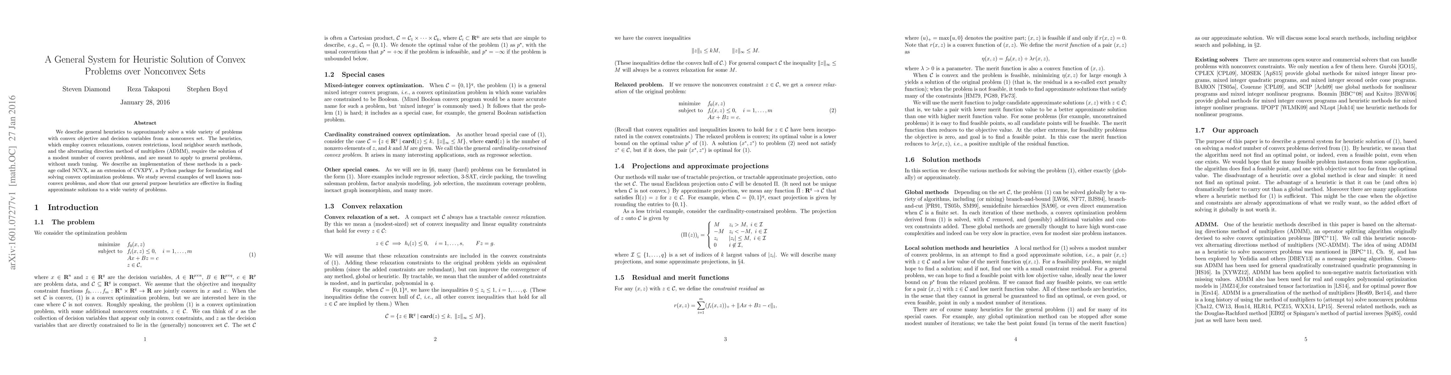 Researchers developed a general system for solving convex problems with nonconvex sets using heuristics that require only a few convex problem solutions, effectively applying to various nonconvex problems without extensive tuning.