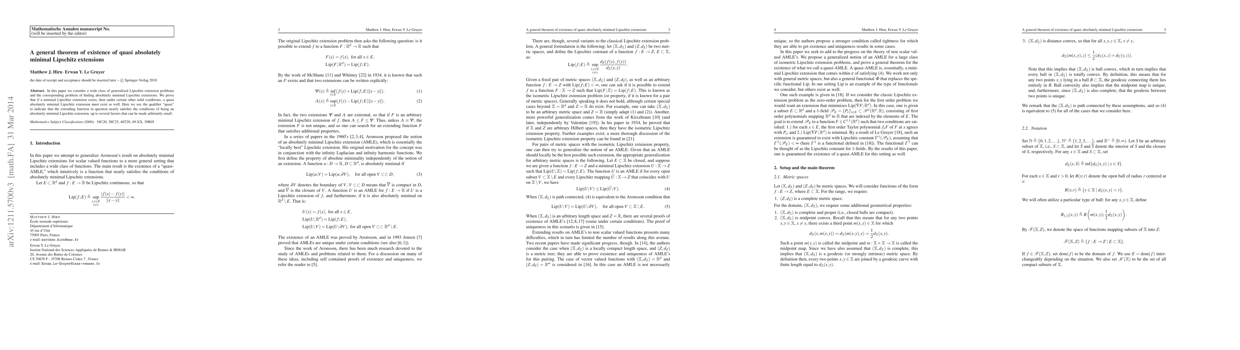 In this paper we consider a wide class of generalized Lipschitz extension problems and the corresponding problem of finding absolutely minimal Lipschitz extensions. We prove that if a minimal Lipschitz extension exists, then under certain other mild conditions, a quasi absolutely minimal Lipschitz extension must exist as well. Here we use the qualifier "quasi" to indicate that the extending function in question nearly satisfies the conditions of being an absolutely minimal Lipschitz extension, up to several factors that can be made arbitrarily small.