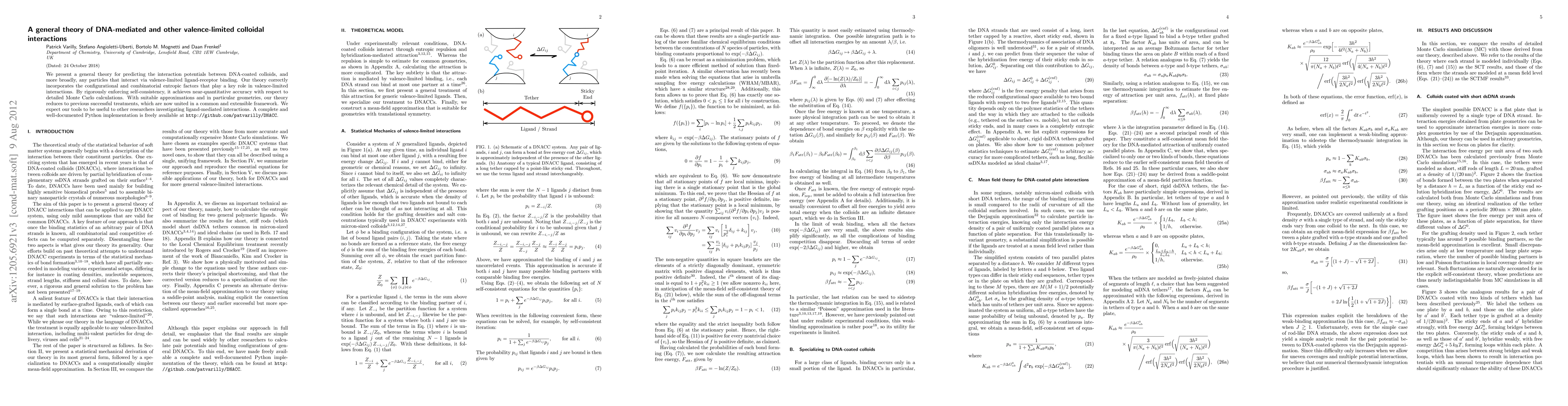 This paper develops a comprehensive theory for predicting interactions between DNA-coated colloids and other valence-limited ligand-receptor binding systems, incorporating entropic factors for accuracy. It provides a unified framework that reduces to previous models and offers a Python implementation for broader research use.
