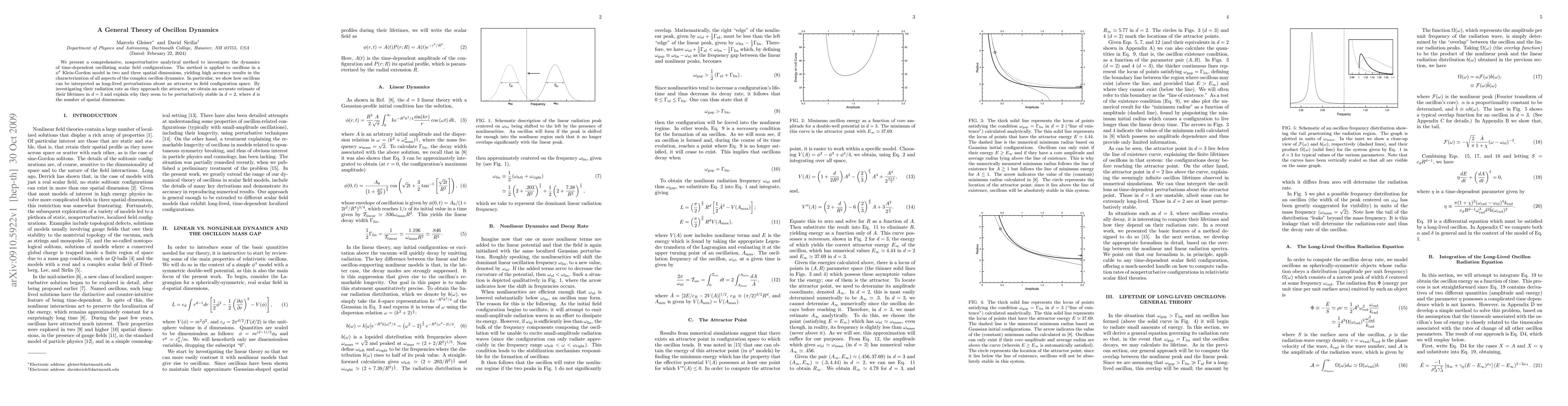 We present a comprehensive, nonperturbative analytical method to investigate the dynamics of time-dependent oscillating scalar field configurations. The method is applied to oscillons in a double well Klein-Gordon model in two and three spatial dimensions, yielding high accuracy results in the characterization of all aspects of the complex oscillon dynamics. In particular, we show how oscillons can be interpreted as long-lived perturbations about an attractor in field configuration space. By investigating their radiation rate as they approach the attractor, we obtain an accurate estimate of their lifetimes in d=3 and explain why they seem to be perturbatively stable in d=2, where d is the number of spatial dimensions.
