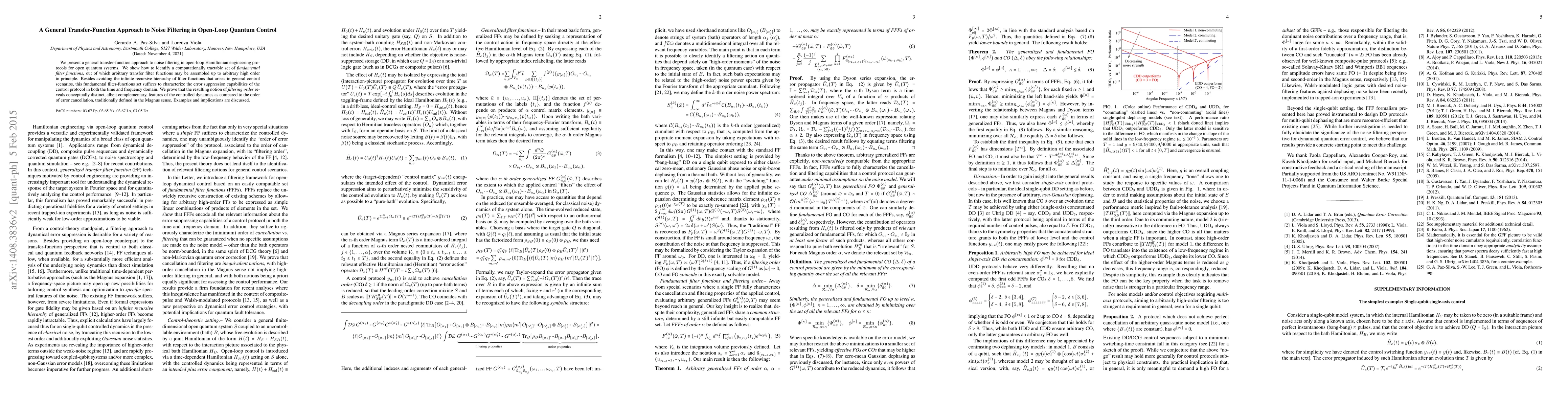 We present a general transfer-function approach to noise filtering in open-loop Hamiltonian engineering protocols for open quantum systems. We show how to identify a computationally tractable set of fundamental filter functions, out of which arbitrary transfer filter functions may be assembled up to arbitrary high order in principle. Besides avoiding the infinite recursive hierarchy of filter functions that arises in general control scenarios, this fundamental filter-functions set suffices to characterize the error suppression capabilities of the control protocol in both the time and frequency domain. We prove that the resulting notion of filtering order reveals conceptually distinct, albeit complementary, features of the controlled dynamics as compared to the order of error cancellation, traditionally defined in the Magnus sense. Examples and implications are discussed.