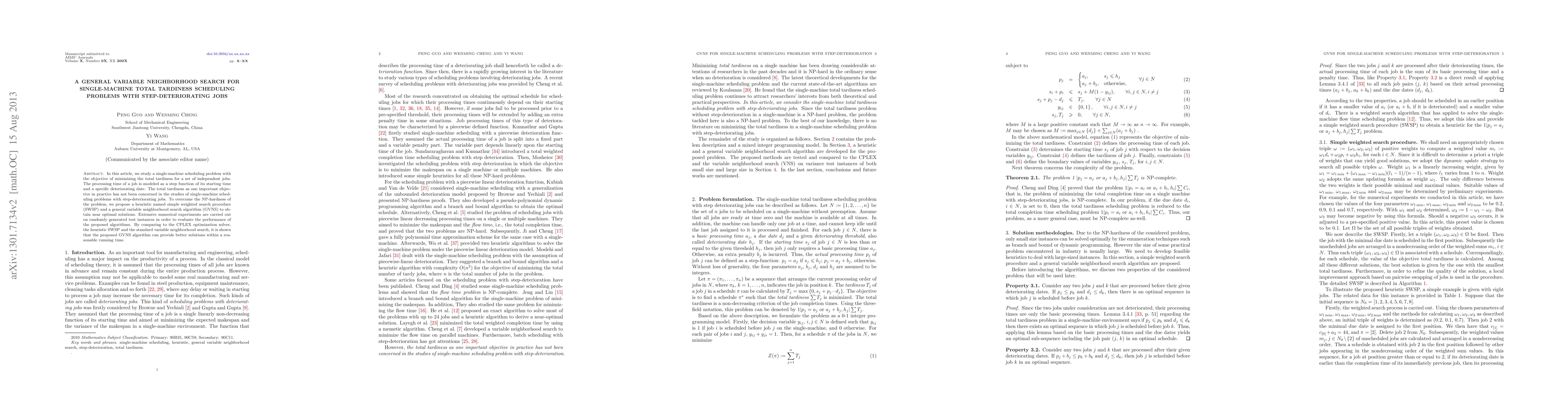 In this article, we study a single-machine scheduling problem of minimizing the total tardiness for a set of independent jobs. The processing time of a job is modeled as a step function of its starting time and a specific deteriorating date. A mixed integer programming model was applied to the problem and validated. Since the problem is known to be NP-hard, we proposed a heuristic named simple weighted search procedure (SWSP) and a general variable neighborhood search algorithm (GVNS). A perturbation procedure with 3-opt is embedded within the GVNS process in order to explore broader spaces. Extensive numerical experiments are carried out on some randomly generated test instances so as to investigate the performance of the proposed algorithms. By comparing to the results of the CPLEX optimization solver, the heuristic SWSP and the standard variable neighborhood search, it is shown that the proposed GVNS algorithm can provide better solutions within a reasonable running time.