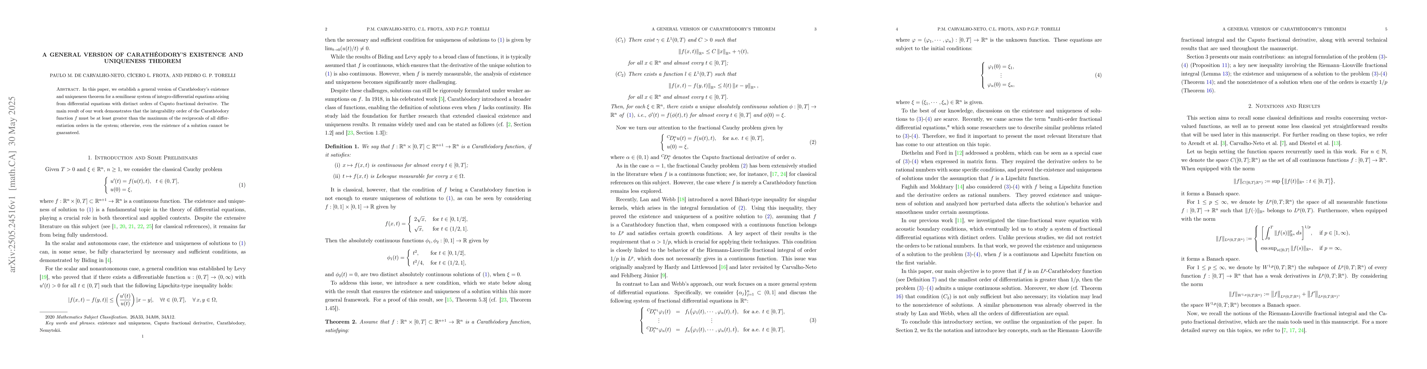 This work extends Carathéodory's theorem to a more general class of integro-differential equations, providing new insights into the conditions required for solution existence and uniqueness in fractional calculus.