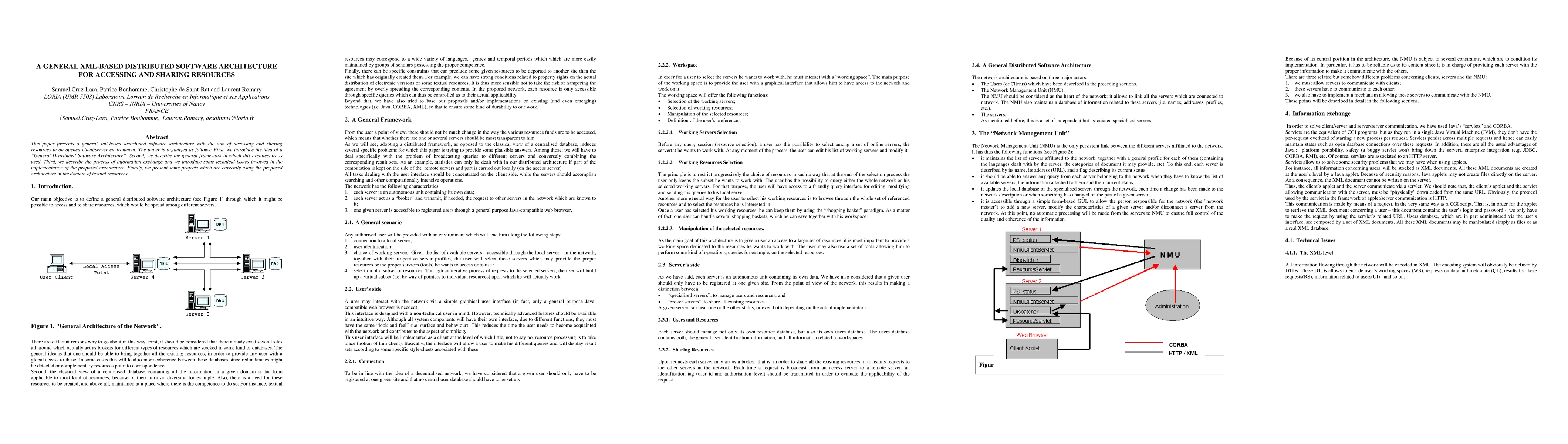 This paper presents a general xml-based distributed software architecture in the aim of accessing and sharing resources in an opened client/server environment. The paper is organized as follows : First, we introduce the idea of a "General Distributed Software Architecture". Second, we describe the general framework in which this architecture is used. Third, we describe the process of information exchange and we introduce some technical issues involved in the implementation of the proposed architecture. Finally, we present some projects which are currently using, or which should use, the proposed architecture.