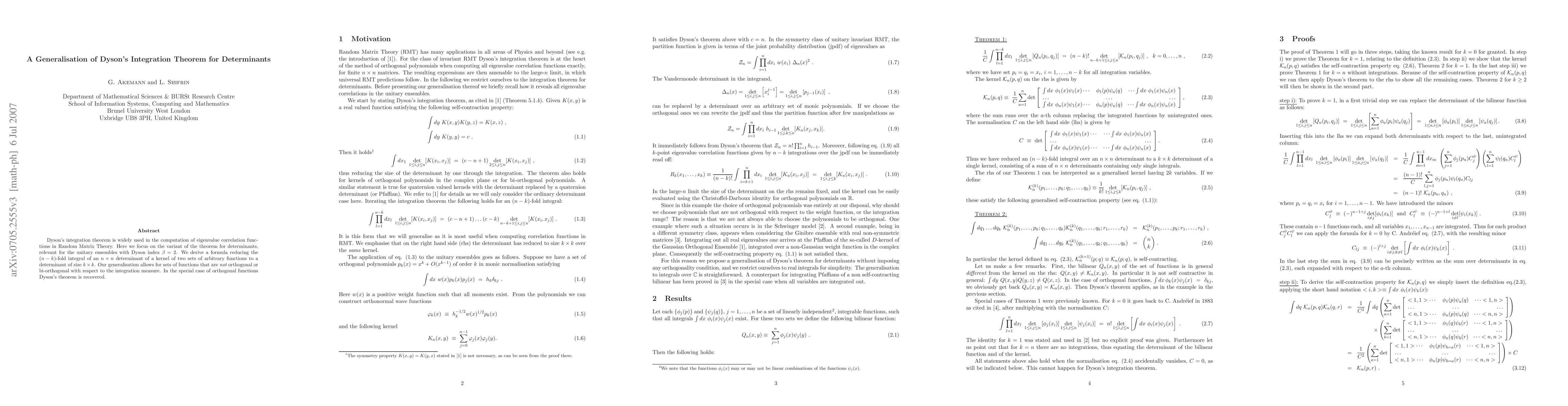 Researchers generalized Dyson's integration theorem for determinants, allowing for non-orthogonal functions and reducing large integrals to smaller determinant calculations.