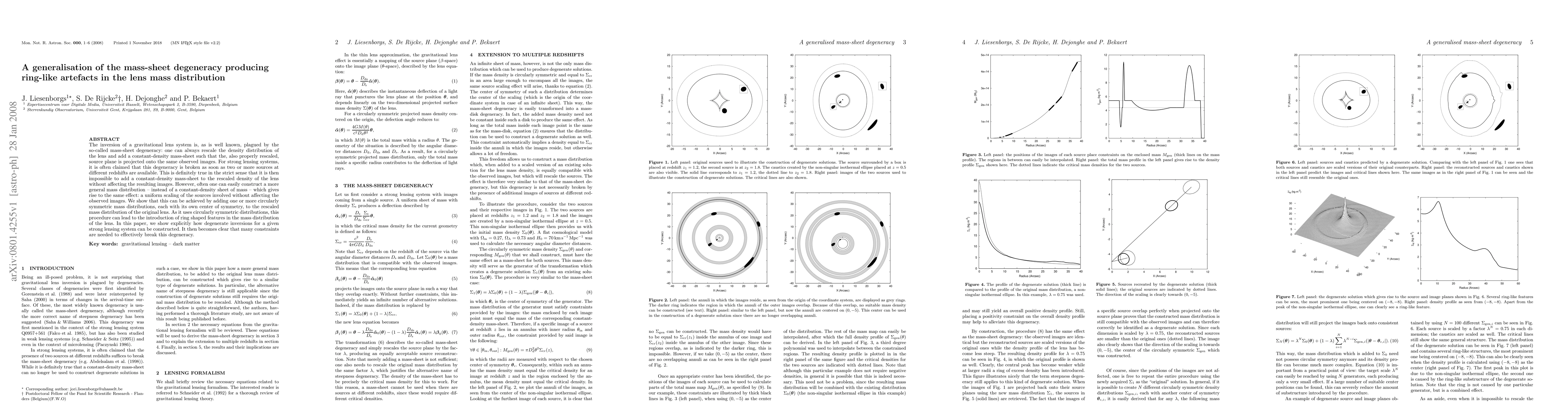 This paper explores the mass-sheet degeneracy in gravitational lensing, demonstrating that even with multiple sources, a more general mass distribution can maintain the same lensing effect by adding circularly symmetric mass distributions, potentially creating ring-like artifacts in the lens mass distribution. It highlights the need for numerous constraints to break this degeneracy.