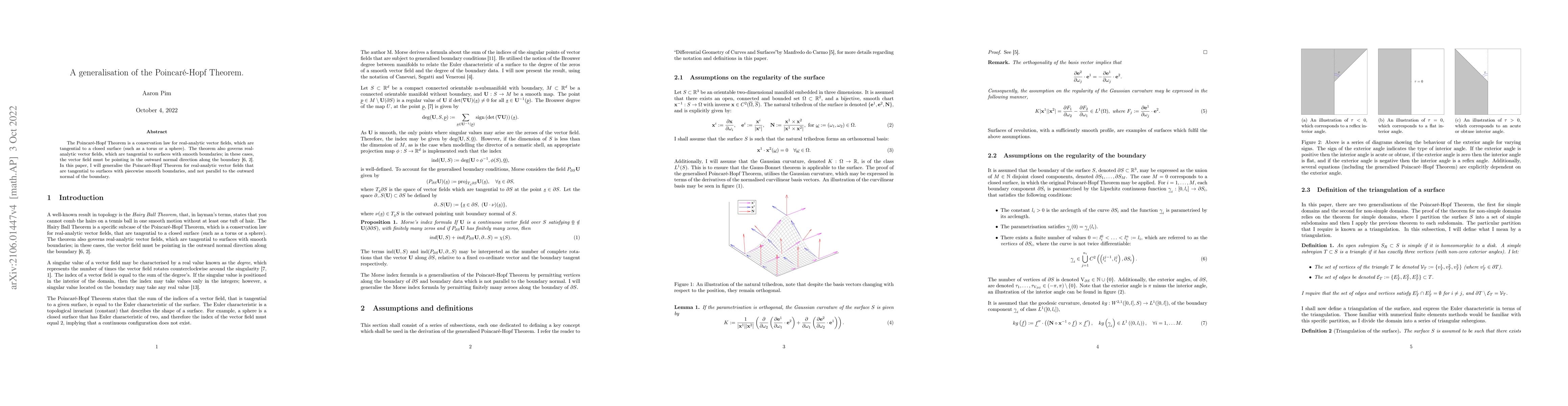 The Poincar\'e-Hopf Theorem is a conservation law for real-analytic vector fields, which are tangential to a closed surface (such as a torus or a sphere). The theorem also governs real-analytic vector fields, which are tangential to surfaces with smooth boundaries; in these cases, the vector field must be pointing in the outward normal direction along the boundary. In this paper, I will generalise the Poincar\'e-Hopf Theorem for real-analytic vector fields that are tangential to surfaces with piecewise smooth boundaries, and not parallel to the outward normal of the boundary.