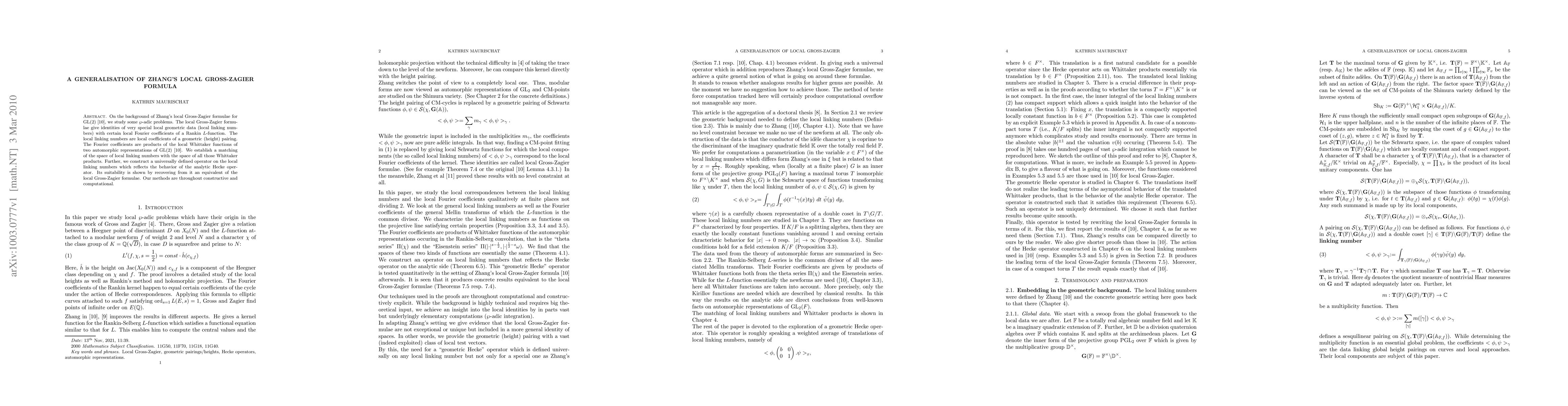 This paper generalizes Zhang's local Gross-Zagier formulae for GL(2) by establishing a correspondence between local linking numbers and Whittaker products, and constructing a universally defined operator that mirrors the behavior of the analytic Hecke operator. The methods are constructive and computational.