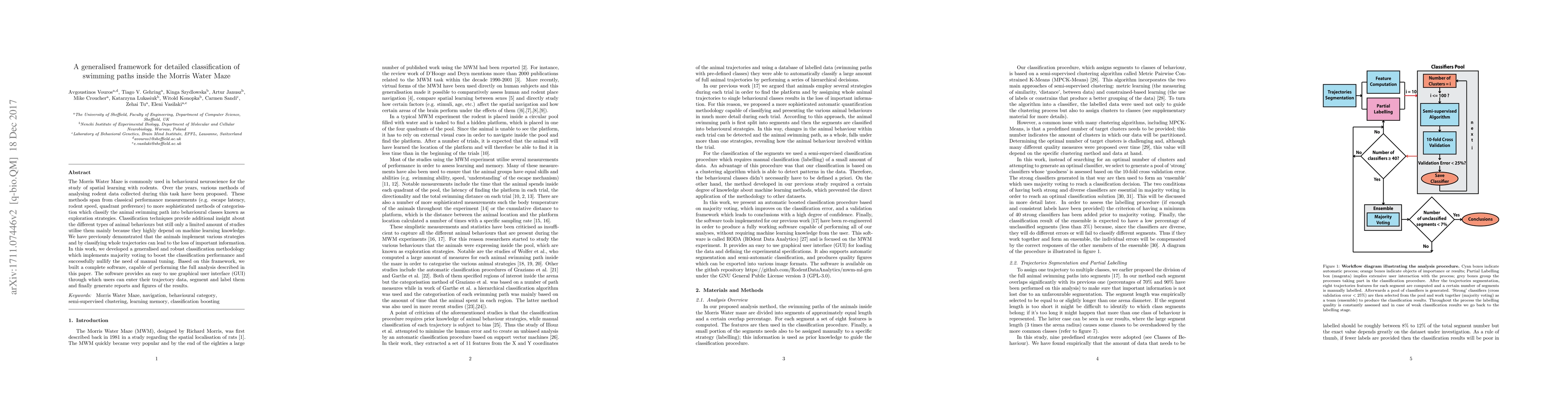 The Morris Water Maze is commonly used in behavioural neuroscience for the study of spatial learning with rodents. Over the years, various methods of analysing rodent data collected in this task have been proposed. These methods span from classical performance measurements (e.g. escape latency, rodent speed, quadrant preference) to more sophisticated methods of categorisation which classify the animal swimming path into behavioural classes known as strategies. Classification techniques provide additional insight in relation to the actual animal behaviours but still only a limited amount of studies utilise them mainly because they highly depend on machine learning knowledge. We have previously demonstrated that the animals implement various strategies and by classifying whole trajectories can lead to the loss of important information. In this work, we developed a generalised and robust classification methodology which implements majority voting to boost the classification performance and successfully nullify the need of manual tuning. Based on this framework, we built a complete software, capable of performing the full analysis described in this paper. The software provides an easy to use graphical user interface (GUI) through which users can enter their trajectory data, segment and label them and finally generate reports and figures of the results.