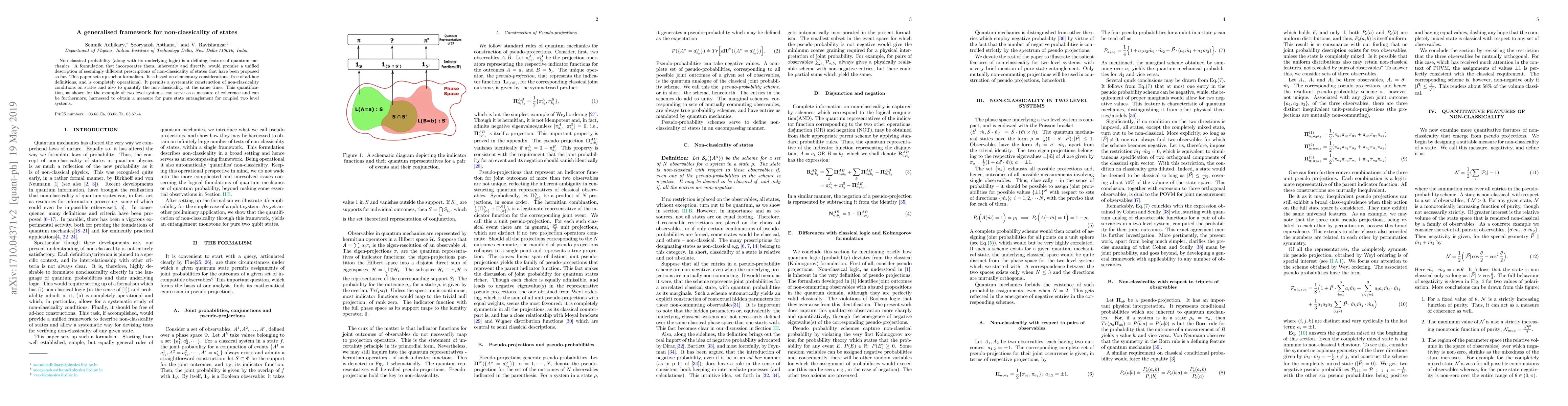 Non-classical probability (along with its underlying logic) is a defining feature of quantum mechanics. A formulation that incorporates them, inherently and directly, would promise a unified description of seemingly different prescriptions of non-classicality of states that have been proposed so far. This paper sets up such a formalism. It is based on elementary considerations, free of ad-hoc definitions, and is completely operational. It permits a systematic construction of non-classicality conditions on states and also to quantify the non-classicality, at the same time. This quantification, as shown for the example of two level systems, can serve as a measure of coherence and can be furthermore, harnessed to obtain a measure for pure state entanglement for coupled two level systems.