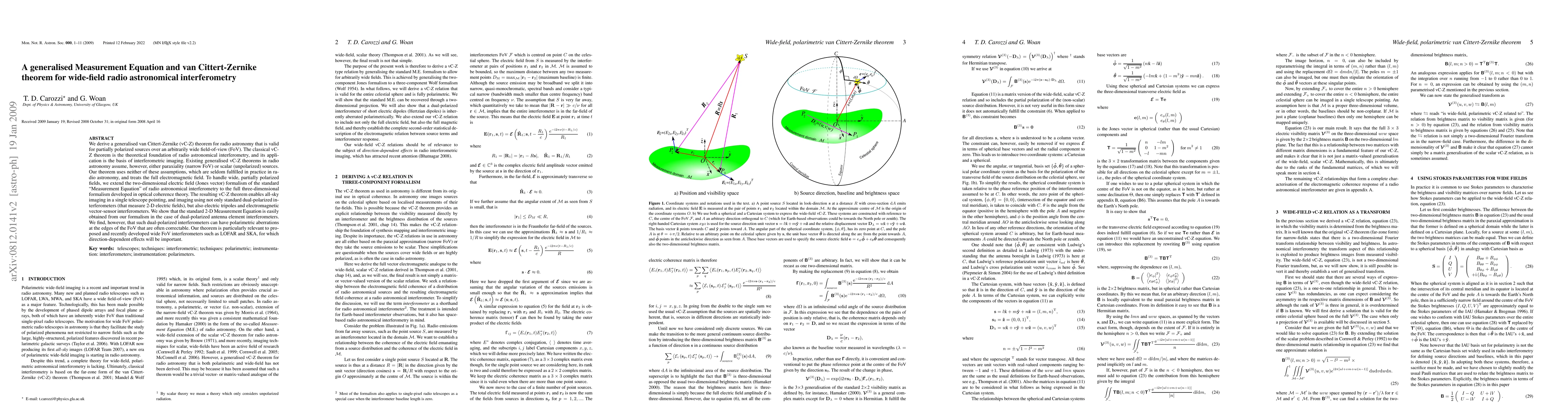 This paper derives a generalised van Cittert-Zernike theorem for radio astronomical interferometry, valid for partially polarized sources over wide fields. It extends the standard Measurement Equation to handle three-dimensional electromagnetic fields, enabling all-sky imaging and correcting polarimetric aberrations in dual-polarized interferometers.