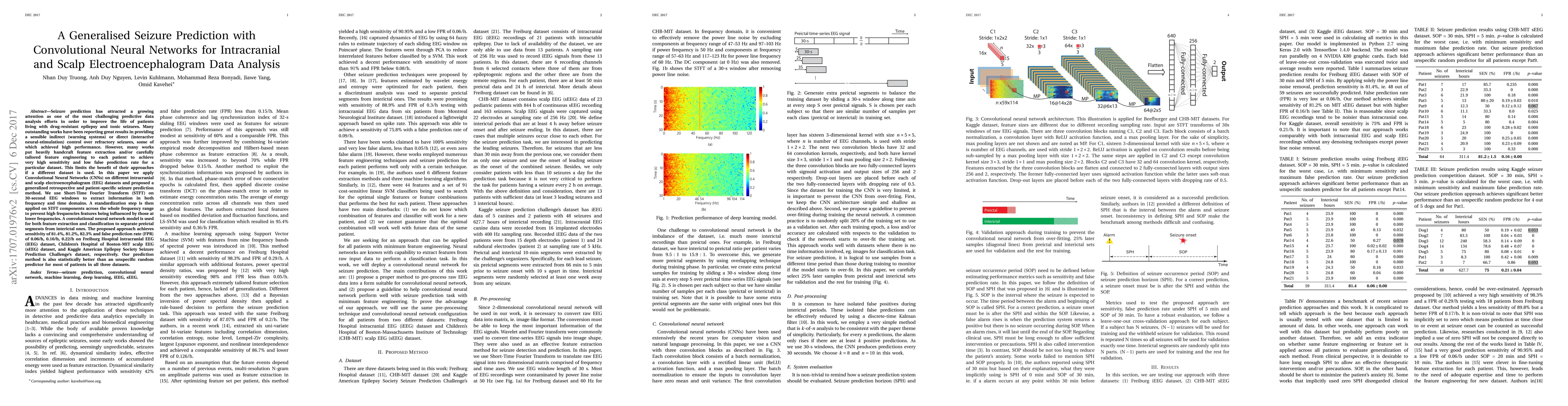 Seizure prediction has attracted a growing attention as one of the most challenging predictive data analysis efforts in order to improve the life of patients living with drug-resistant epilepsy and tonic seizures. Many outstanding works have been reporting great results in providing a sensible indirect (warning systems) or direct (interactive neural-stimulation) control over refractory seizures, some of which achieved high performance. However, many works put heavily handcraft feature extraction and/or carefully tailored feature engineering to each patient to achieve very high sensitivity and low false prediction rate for a particular dataset. This limits the benefit of their approaches if a different dataset is used. In this paper we apply Convolutional Neural Networks (CNNs) on different intracranial and scalp electroencephalogram (EEG) datasets and proposed a generalized retrospective and patient-specific seizure prediction method. We use Short-Time Fourier Transform (STFT) on 30-second EEG windows with 50% overlapping to extract information in both frequency and time domains. A standardization step is then applied on STFT components across the whole frequency range to prevent high frequencies features being influenced by those at lower frequencies. A convolutional neural network model is used for both feature extraction and classification to separate preictal segments from interictal ones. The proposed approach achieves sensitivity of 81.4%, 81.2%, 82.3% and false prediction rate (FPR) of 0.06/h, 0.16/h, 0.22/h on Freiburg Hospital intracranial EEG (iEEG) dataset, Children's Hospital of Boston-MIT scalp EEG (sEEG) dataset, and Kaggle American Epilepsy Society Seizure Prediction Challenge's dataset, respectively. Our prediction method is also statistically better than an unspecific random predictor for most of patients in all three datasets.