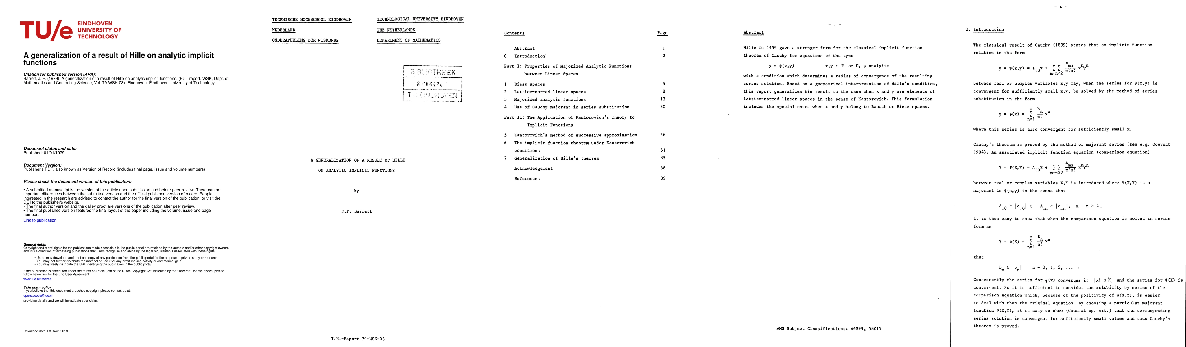 This paper generalizes Hille's 1959 result on the implicit function theorem for analytic functions by extending the theorem to lattice-normed linear spaces, encompassing Banach and Riesz spaces through a geometrical interpretation of Hille's convergence condition.