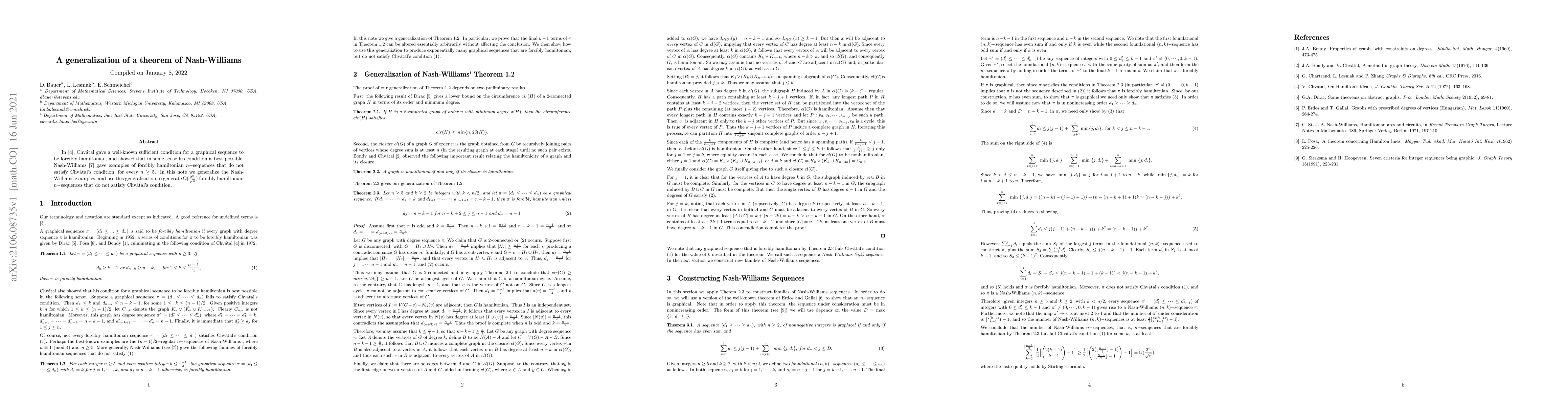 In 1972, Chvatal gave a well-known sufficient condition for a graphical sequence to be forcibly hamiltonian, and showed that in some sense his condition is best possible. Nash-Williams gave examples of forcibly hamiltonian n-sequences that do not satisfy Chvatla's condition for every n at least 5. In this note we generalize the Nash-Williams examples, and use this generalization to generate \Omega(2^n/n^.5) forcibly hamiltonian n-sequences that do not satisfy Chvatal's condition