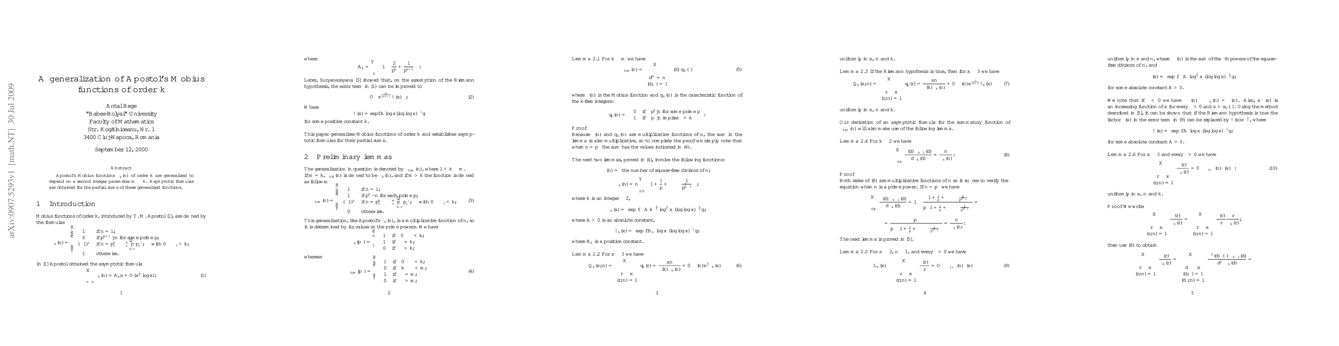 Apostol's Mobius functions of order k are generalized to depend on a second integer parameter m. Asymptotic formulas are obtained for the partial sums of these generalized functions.