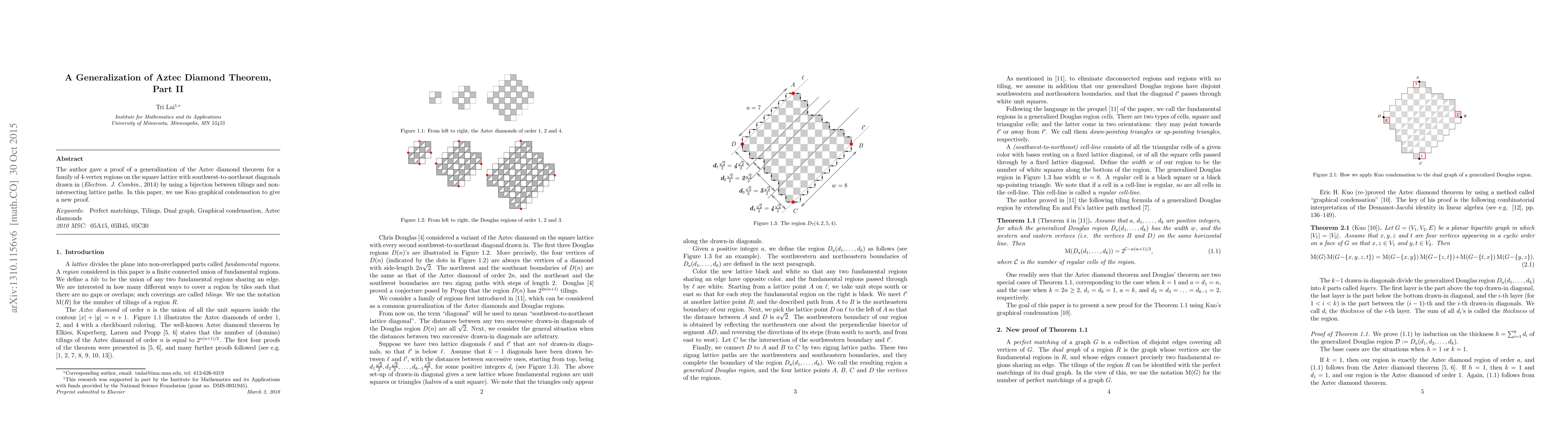 This paper presents a new proof for the generalization of the Aztec diamond theorem using Kuo graphical condensation, building on a previous proof that employed a bijection between tilings and non-intersecting lattice paths.