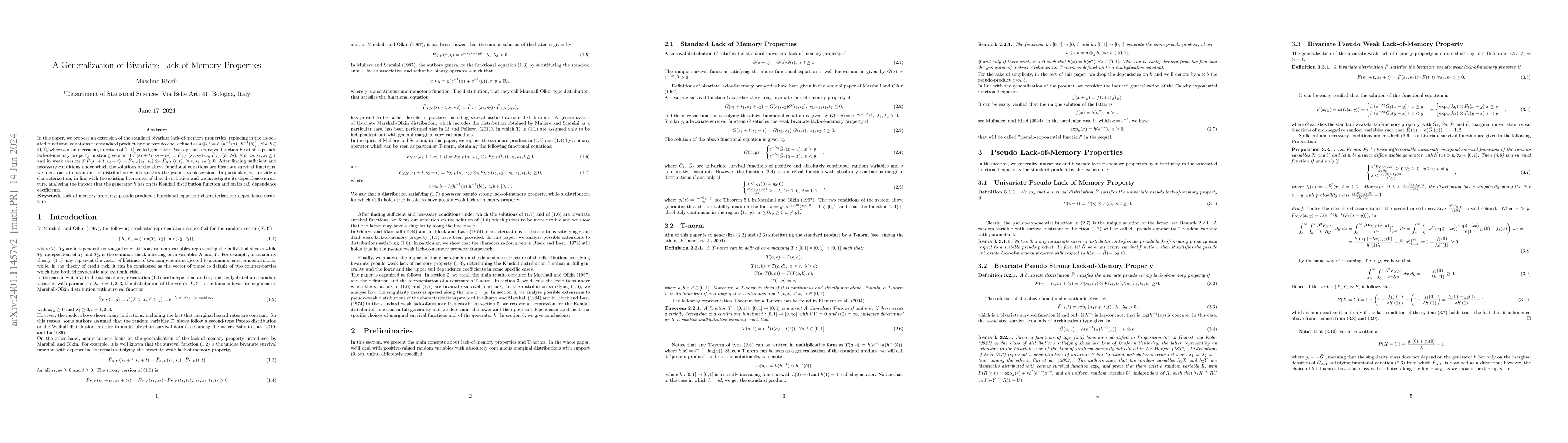 In this paper, we propose an extension of the standard strong and weak lack-of-memory properties. We say that the survival function $\bar{F}$ of the vector $(X,Y)$ satisfies pseudo lack-of-memory property in strong version if \begin{equation} \label{strong}\bar F_{X,Y}(s_1+t_1,s_2+t_2)=\bar F_{X,Y}(s_1,s_2)\otimes_h\bar F_{X,Y}(t_1,t_2), \ t_1,t_2,s_1,s_2 \geq 0 \end{equation} and in weak version if \begin{equation}\label{weak}\bar F_{X,Y}(s_1+t,s_2+t)=\bar F_{X,Y}(s_1,s_2)\otimes_h\bar F_{X,Y}(t,t), \ s_1,s_2,t \geq 0\end{equation} with $a\otimes_hb=h\left (h^{-1}(a)\cdot h^{-1}(b)\right )$, where $h$ is an increasing bijection of $[0,1]$, called generator. After finding sufficient conditions under which the solutions of the above functional equations are bivariate survival functions, we focus on distributions satisfying the latter: we study specific properties in comparison with standard lack-of-memory property and we give a characterization in terms of the random variables $\min(X,Y)$ and $ X -Y$. Finally, we investigate the induced dependence structure, determining their singularity in full generality and studying the upper and lower dependence coefficients for some specific choices of the marginal survival functions and of the generator $h$.