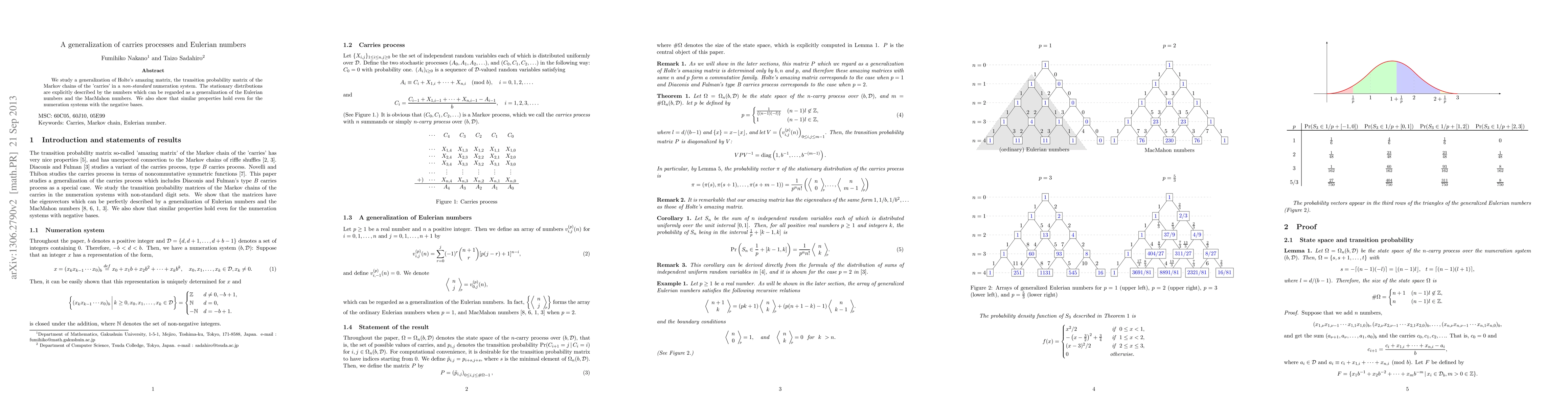 This paper generalizes Holte's matrix, exploring the transition probabilities of a Markov chain related to carries in non-standard numeration systems, and identifies stationary distributions linked to a new class of Eulerian-like numbers. It also extends these findings to numeration systems with negative bases.