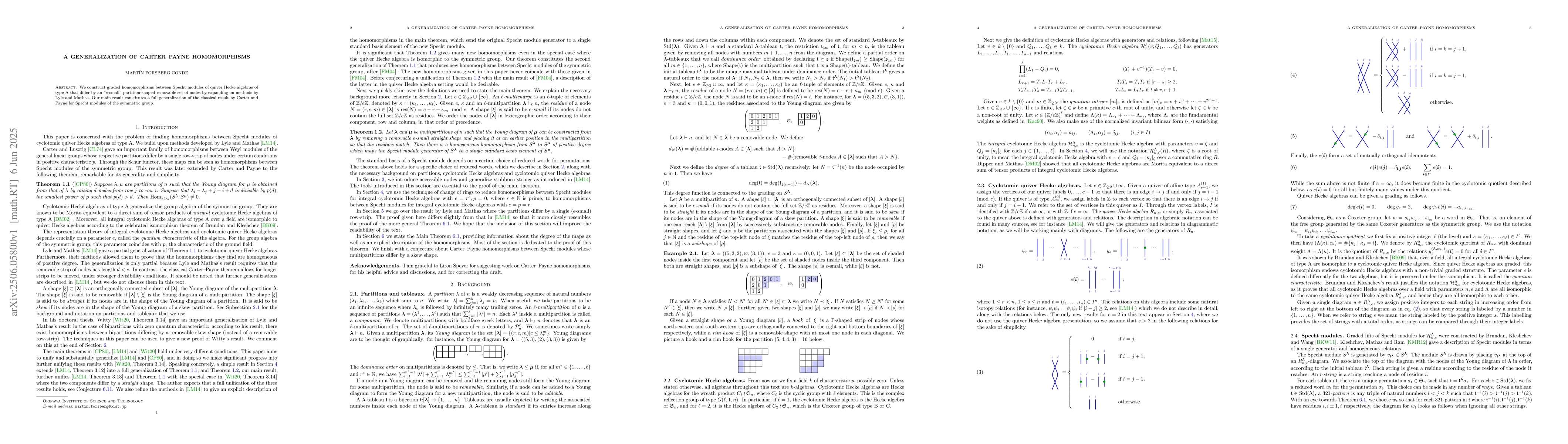 We construct graded homomorphisms between Specht modules of quiver Hecke algebras of type A that differ by an ``$e$-small'' partition-shaped removable set of nodes by expanding on methods by Lyle and Mathas. Our main result constitutes a full generalization of the classical result by Carter and Payne for Specht modules of the symmetric group.