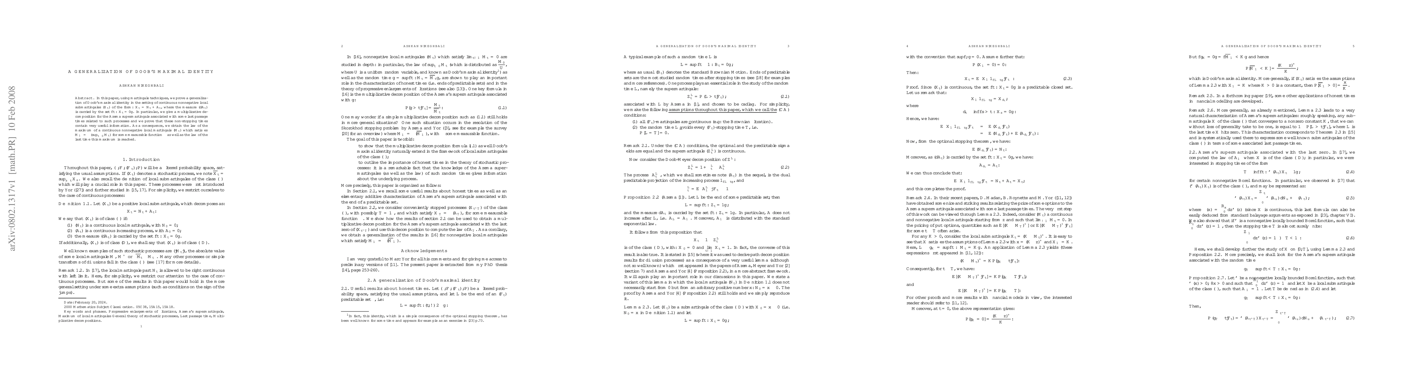 This paper generalizes Doob's maximal identity for continuous nonnegative local submartingales using martingale techniques, revealing a multiplicative decomposition for the Azéma supermartingale linked to last passage times. It also establishes the law of the maximum and the last time it is reached for such processes.