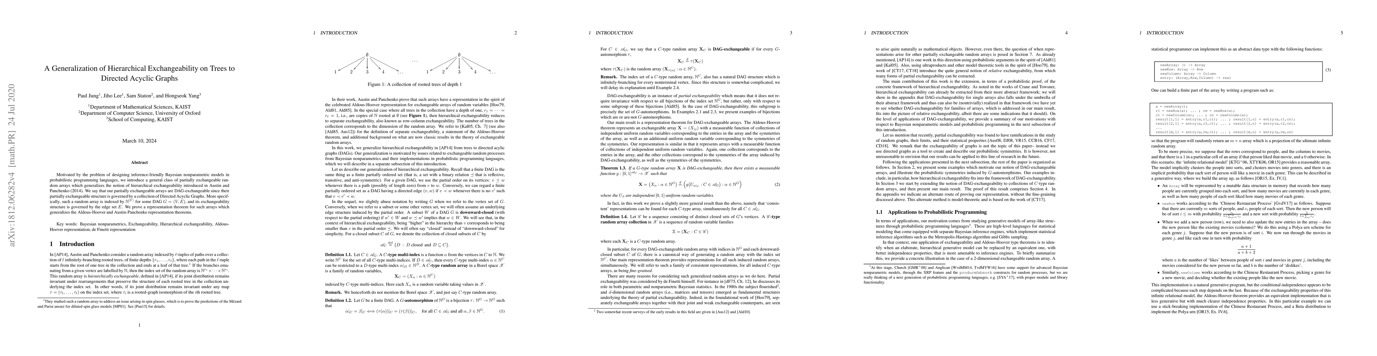 This paper generalizes hierarchical exchangeability to Directed Acyclic Graphs (DAGs) to design inference-friendly Bayesian nonparametric models. The authors introduce DAG-exchangeable random arrays governed by a collection of DAGs, proving a representation theorem that extends the Aldous-Hoover and Austin-Panchenko theorems.