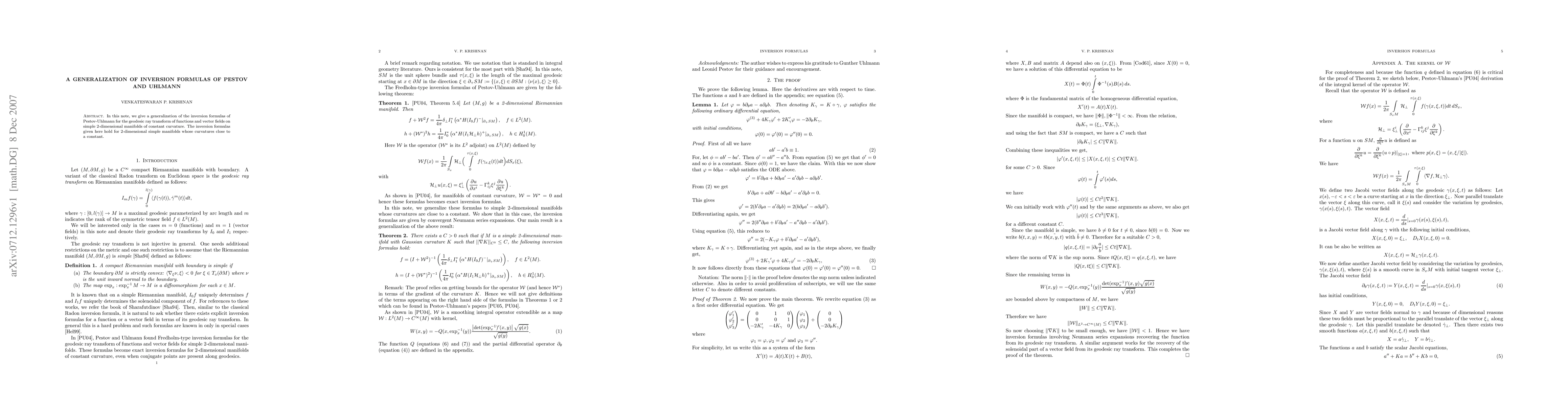 Summary: This paper generalizes Pestov-Uhlmann's inversion formulas for the geodesic ray transform on 2-dimensional manifolds with curvatures close to constant, extending the applicability to such manifolds.