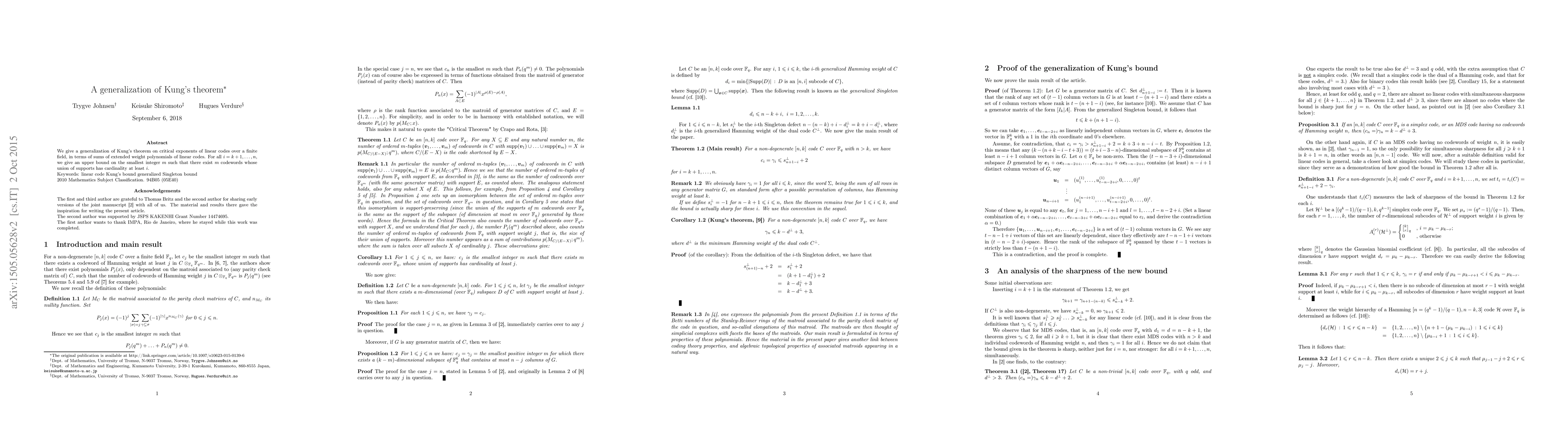 The paper introduces a generalization of Kung's theorem using extended weight polynomials, providing a new perspective on critical exponents of linear codes.